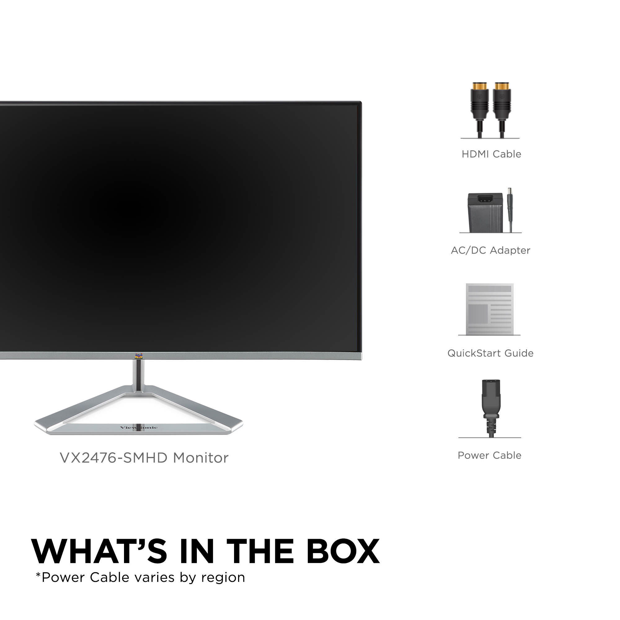 | Package Contents | VX2476-SMHD, Power Cable, AC/CD Adapter, HDMI Cable, QuickStart Guide |
