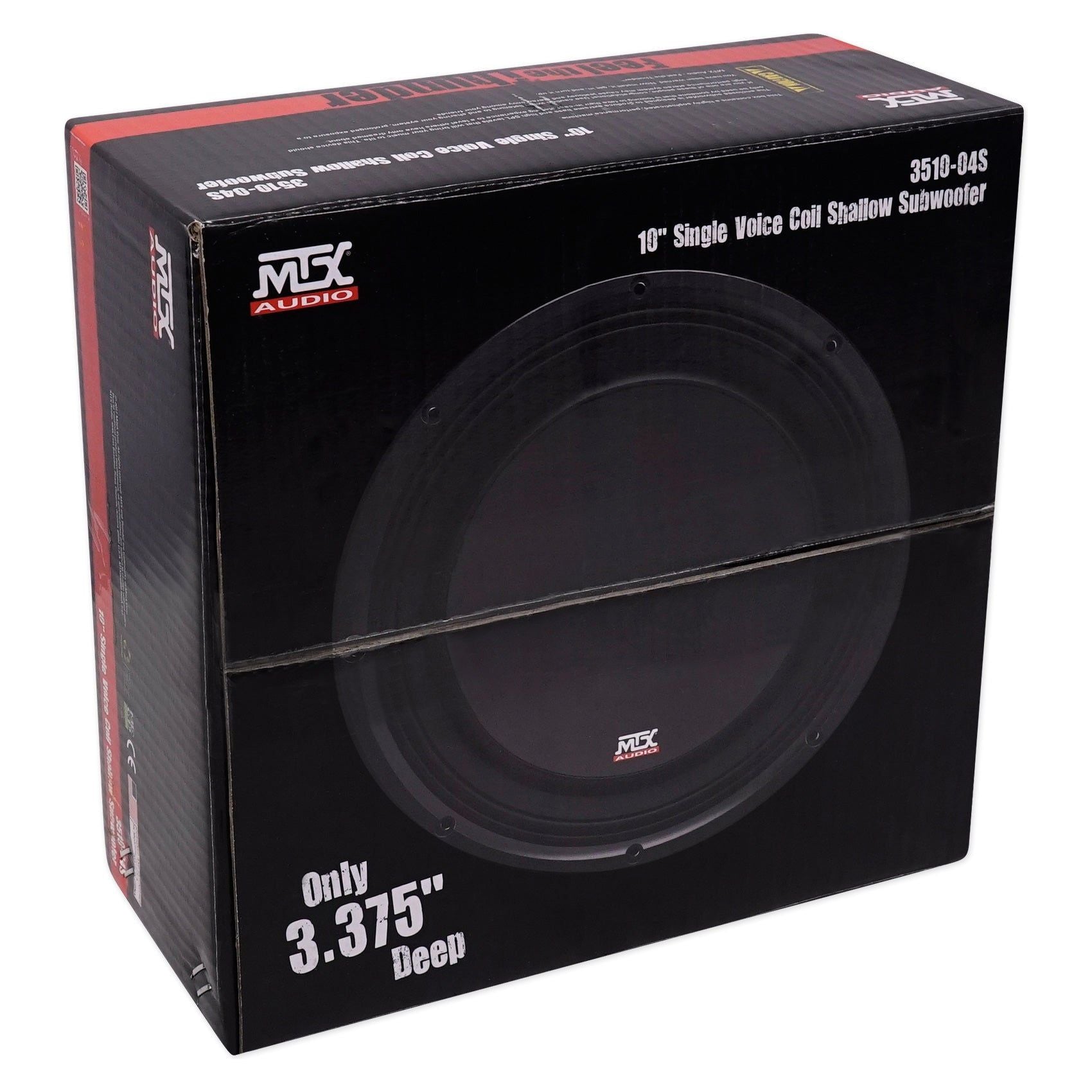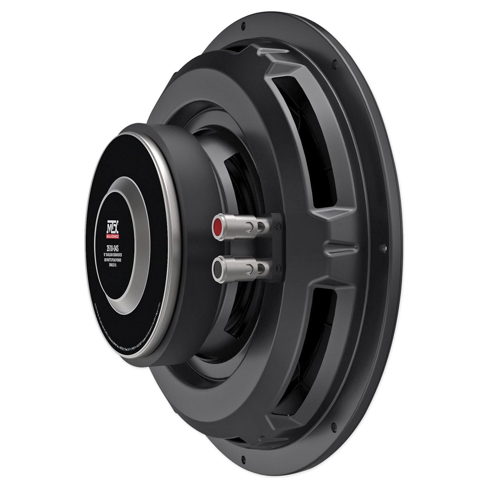 The 3512-04S is a 10" single voice coil, 4O, 300-watt shallow mount Car