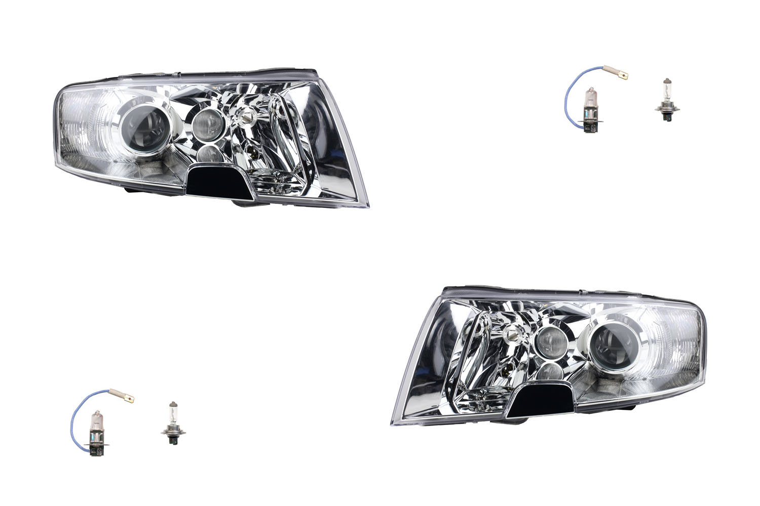 SCHEINWERFER mit abgebildeten Leuchtmitteln mit H7/H3/H3 Set links & rechts, links und rechts als Paar (beide Seiten im Lieferumfang enthalten), Baujahr: 02/02-08/06 Vergleichsnummer(n): Passend für: