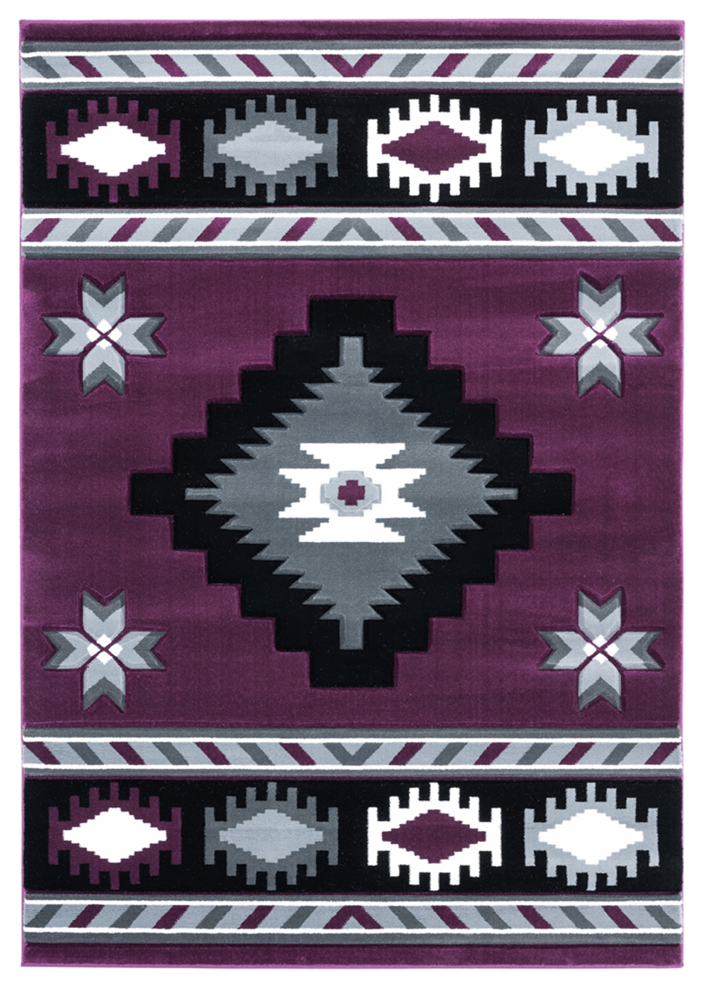 Add this fashionable and contemporary rug into your space for a modern look. This geometric rug contains shades of grey with accent colors of ruby red and jet black that is sure to make an impact in your living space. This machine-made rug has a hand carved design and is stain and fade resistant for your lifestyle needs. Size Range: 2' x 3', Color Family: Purples, Material: Synthetics, Shape: Rectangle