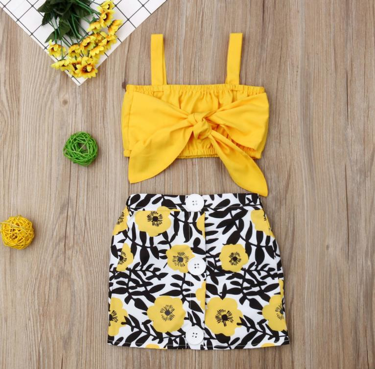 DescriptionNewest Fashion Kids Baby Girls Flower Tops+Skirt Outfits!!! High quality and Brand new 100% Main Color: As The Picture Show New in Fashion Material: Cotton Blend