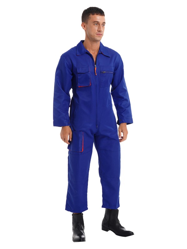 Mens Long Sleeve Zipper Coveralls Multi Pockets Work Jumpsuit Mechanic Uniform Cleaner Workwear.