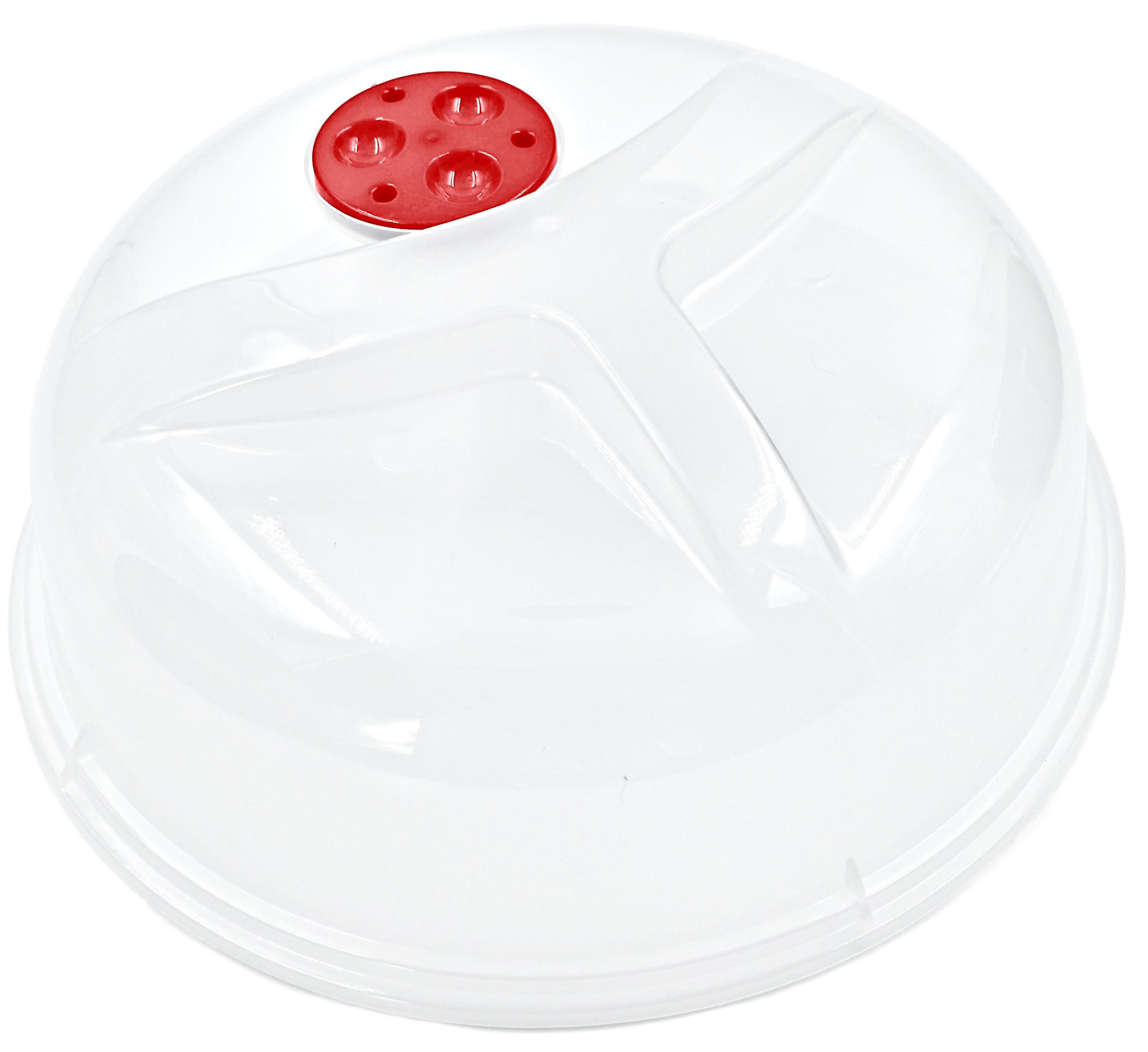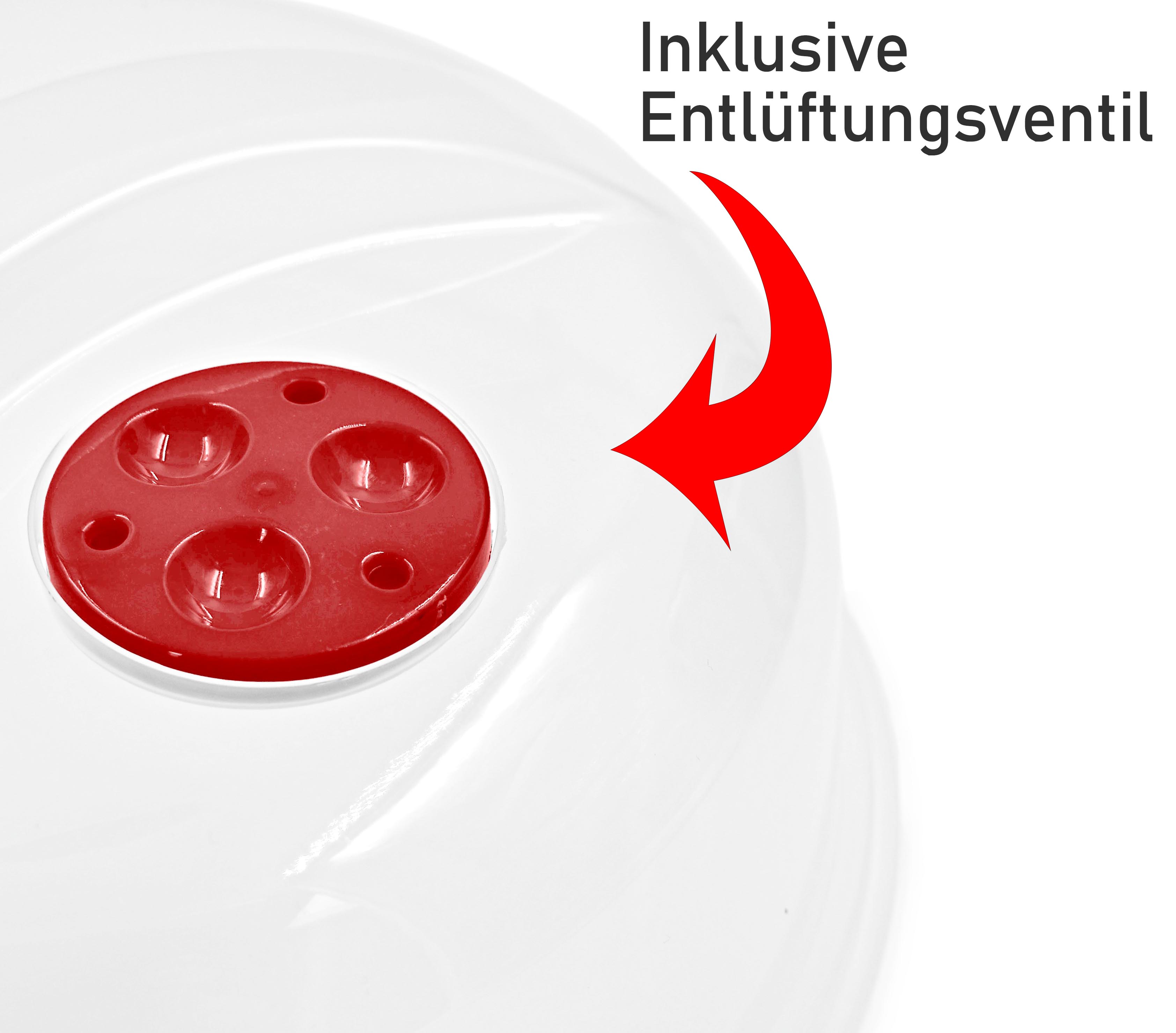 Diese praktische Mikrowellen-Abdeckhaube mit Entlüftungsventil sorgt nicht nur für eine gleichmäßige Erwärmung Ihrer Speisen, sondern bewahrt Ihre Mikrowelle auch vor lästigen Fettspritzern. Die Abdeckung kann zudem problemlos in der Spülmaschine gereinigt werden. Die Farbauswahl erfolgt per Zufallsprinzip.