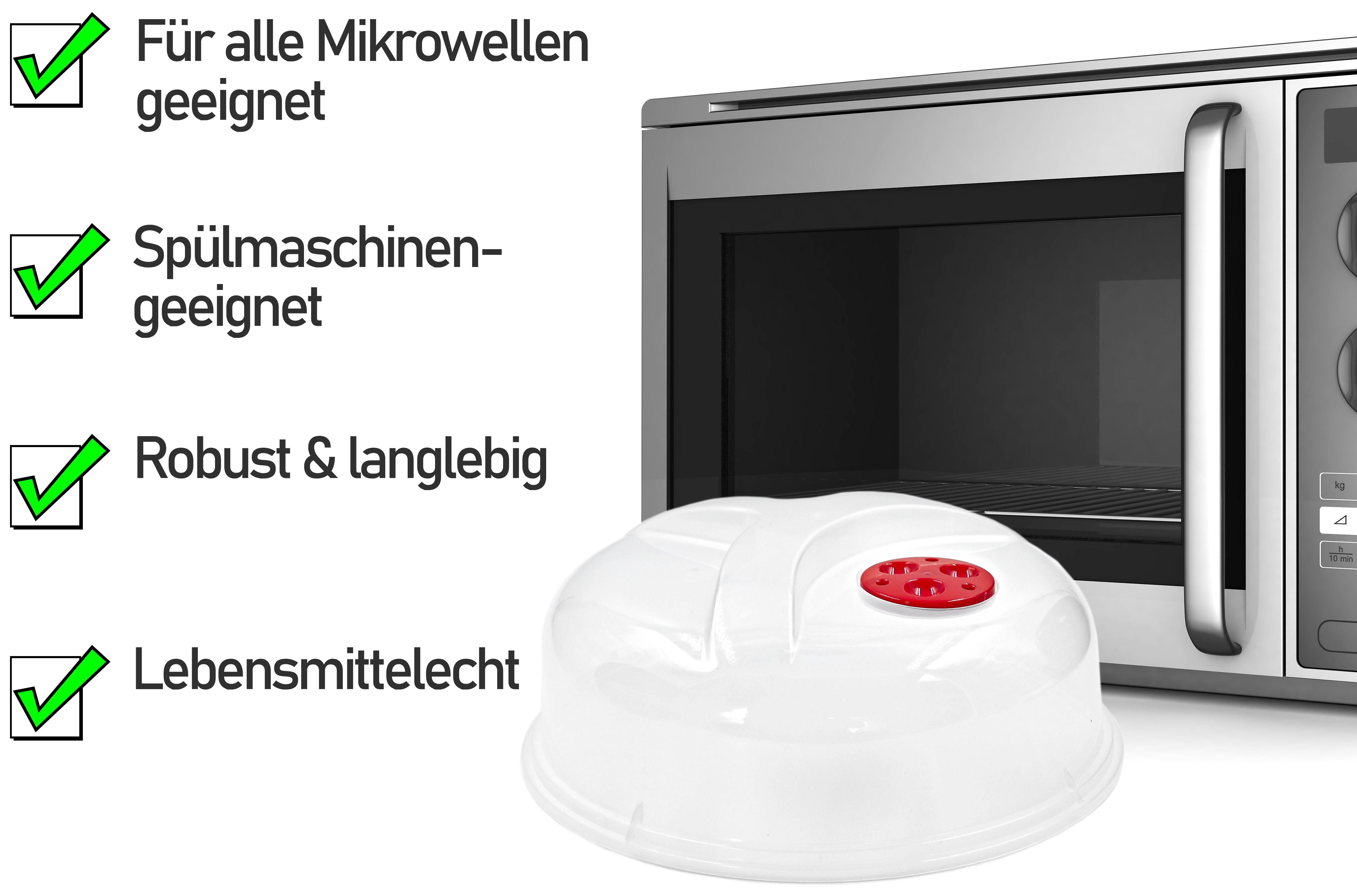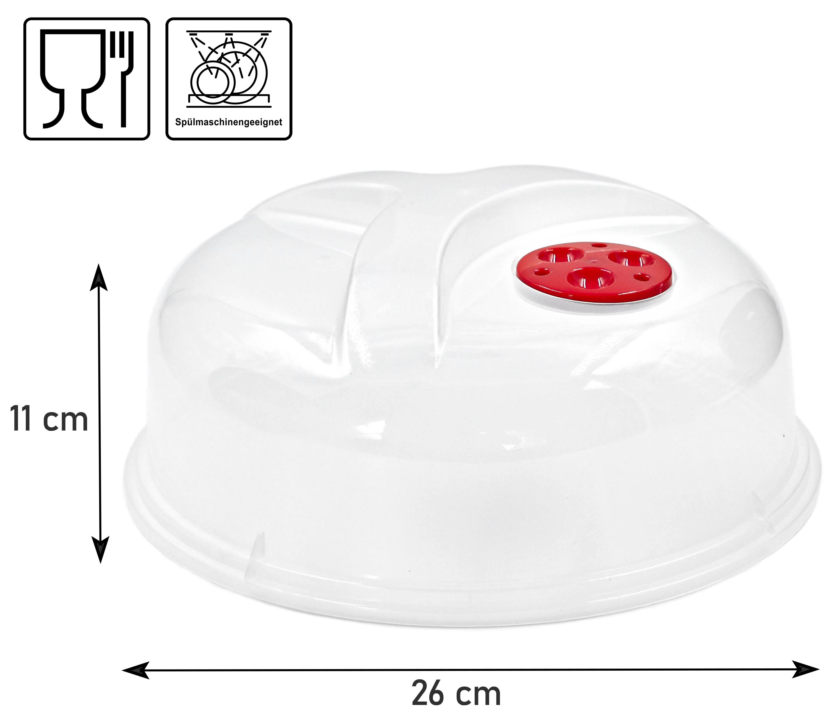 Diese praktische Mikrowellen-Abdeckhaube mit Entlüftungsventil sorgt nicht nur für eine gleichmäßige Erwärmung Ihrer Speisen, sondern bewahrt Ihre Mikrowelle auch vor lästigen Fettspritzern. Die Abdeckung kann zudem problemlos in der Spülmaschine gereinigt werden.