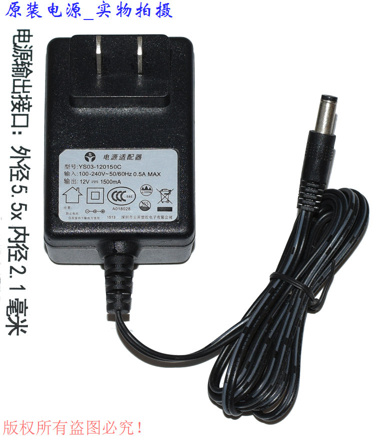 Power Supply YS03-120150C 12V 1500mA AC Adapter US 5.5*2.1mm