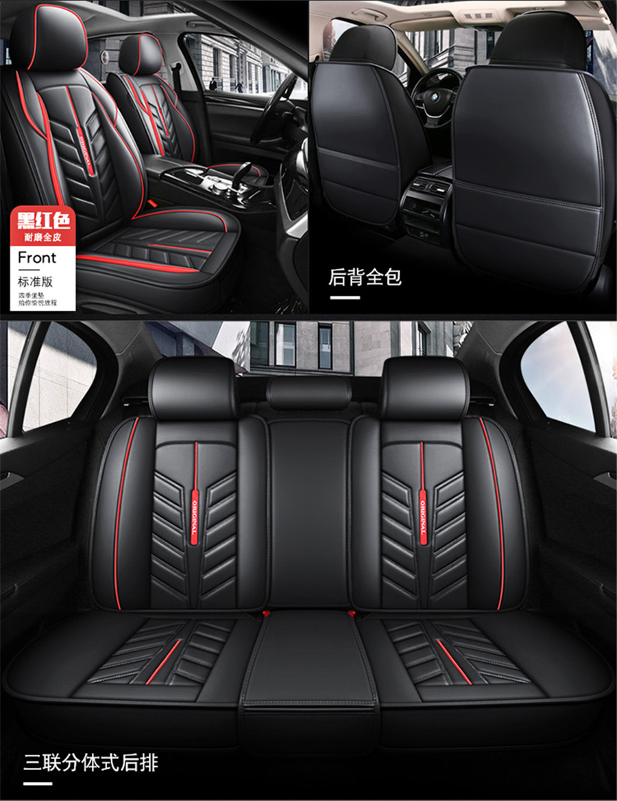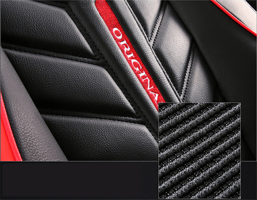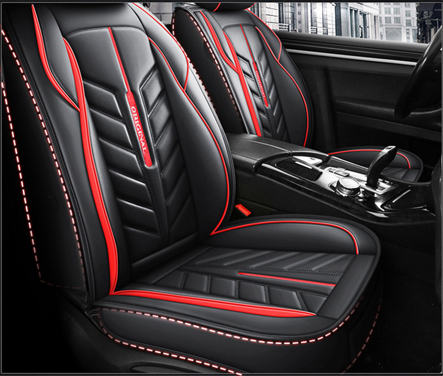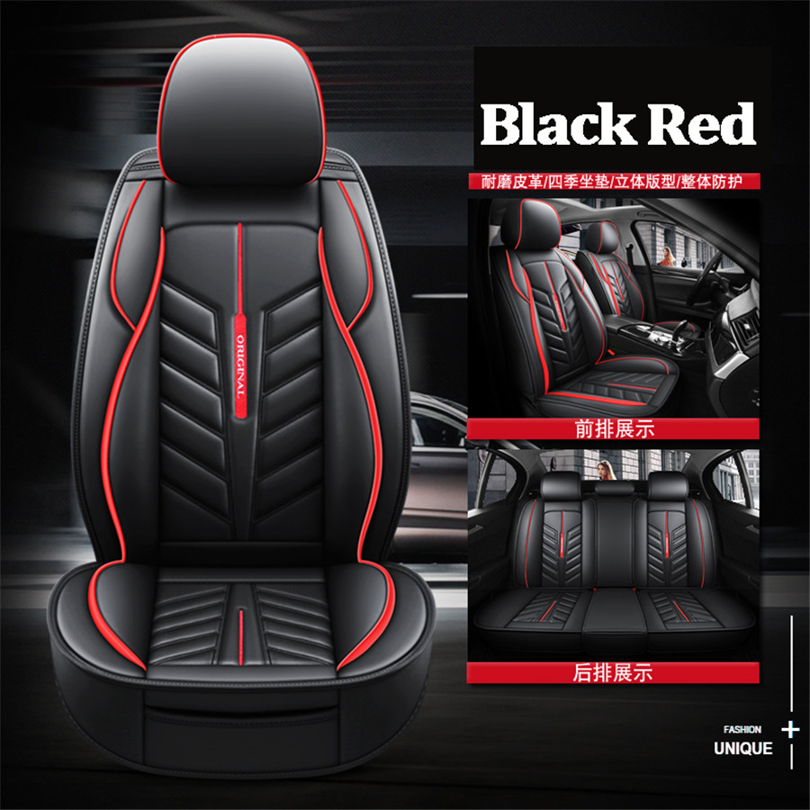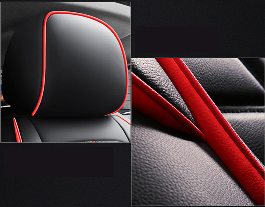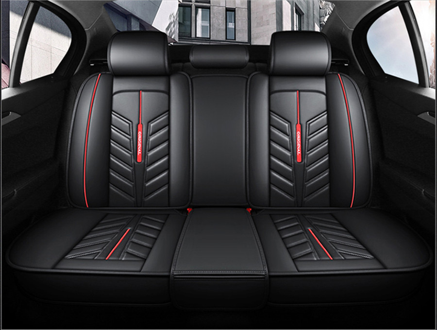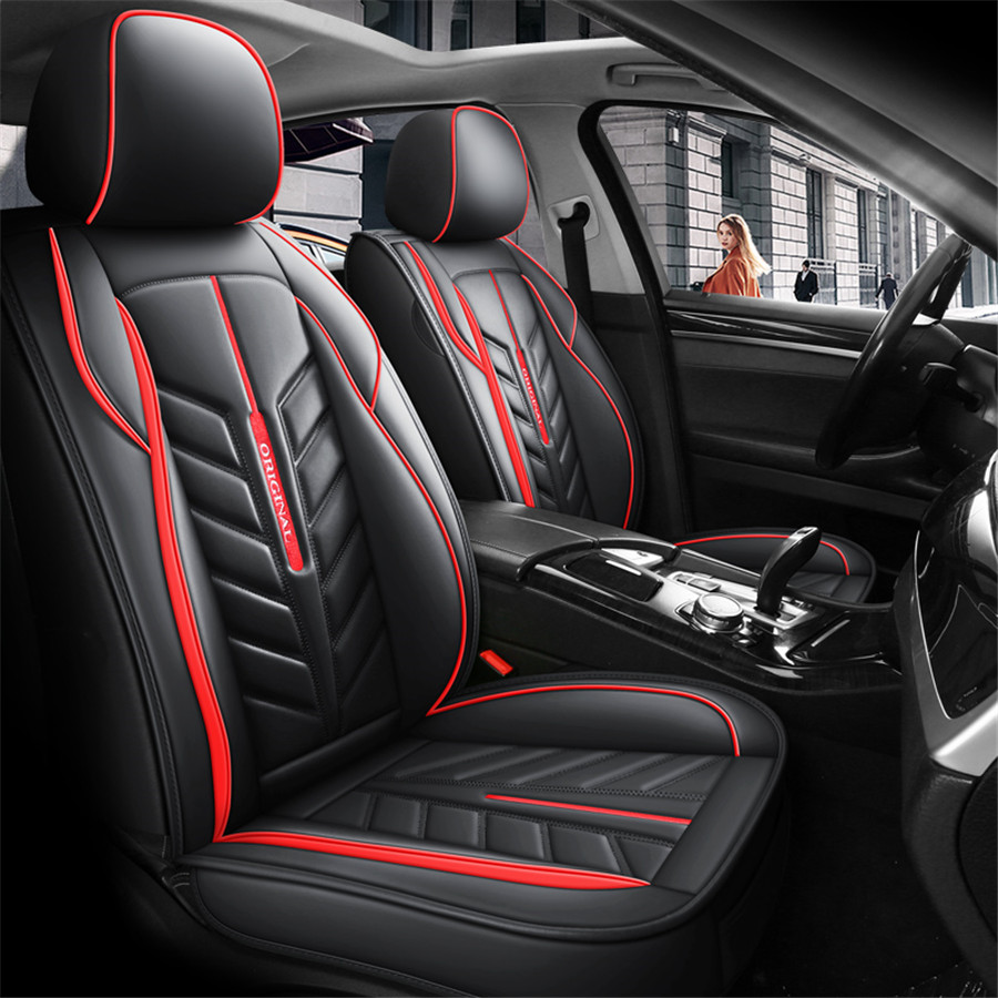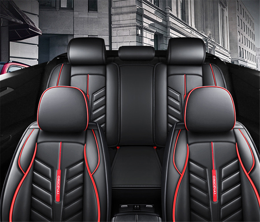 Universal Black Red line Stripe Full Seat Wear-resistant PU Leather Sponge Fabric Car Seat Cover Cushion Breathable