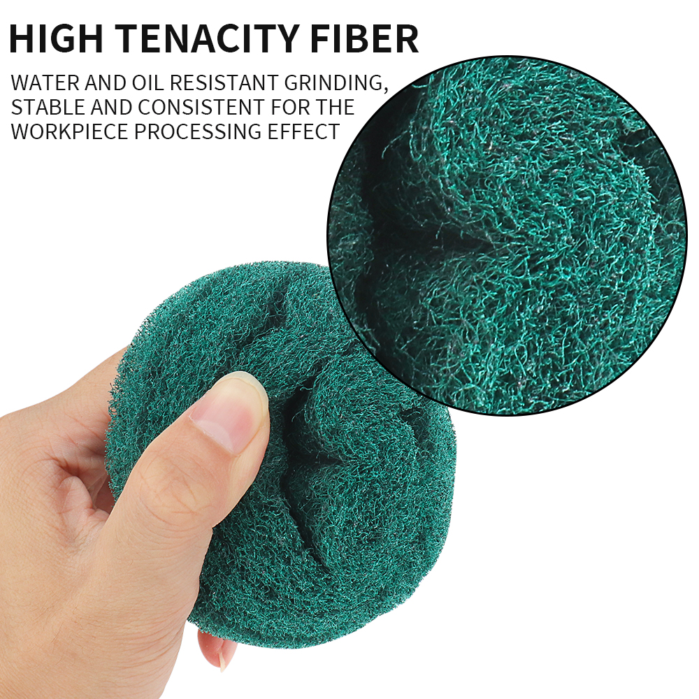 【SCOURING PAD】It is composed of high tenacity fiber and special viscose, which is resistant to water and oil; self-sharpening, high grinding efficiency and good heat dissipation.