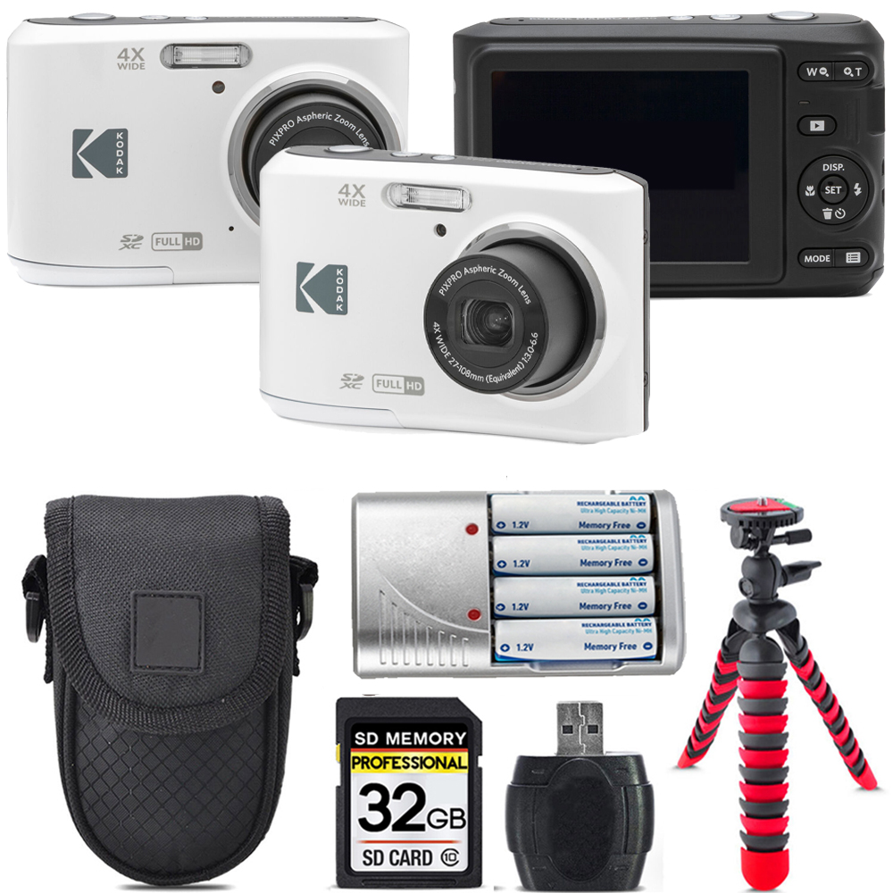 Kodak Pixpro FZ45 Camera (White) +Extra Battery +Tripod +Case -32GB Kit