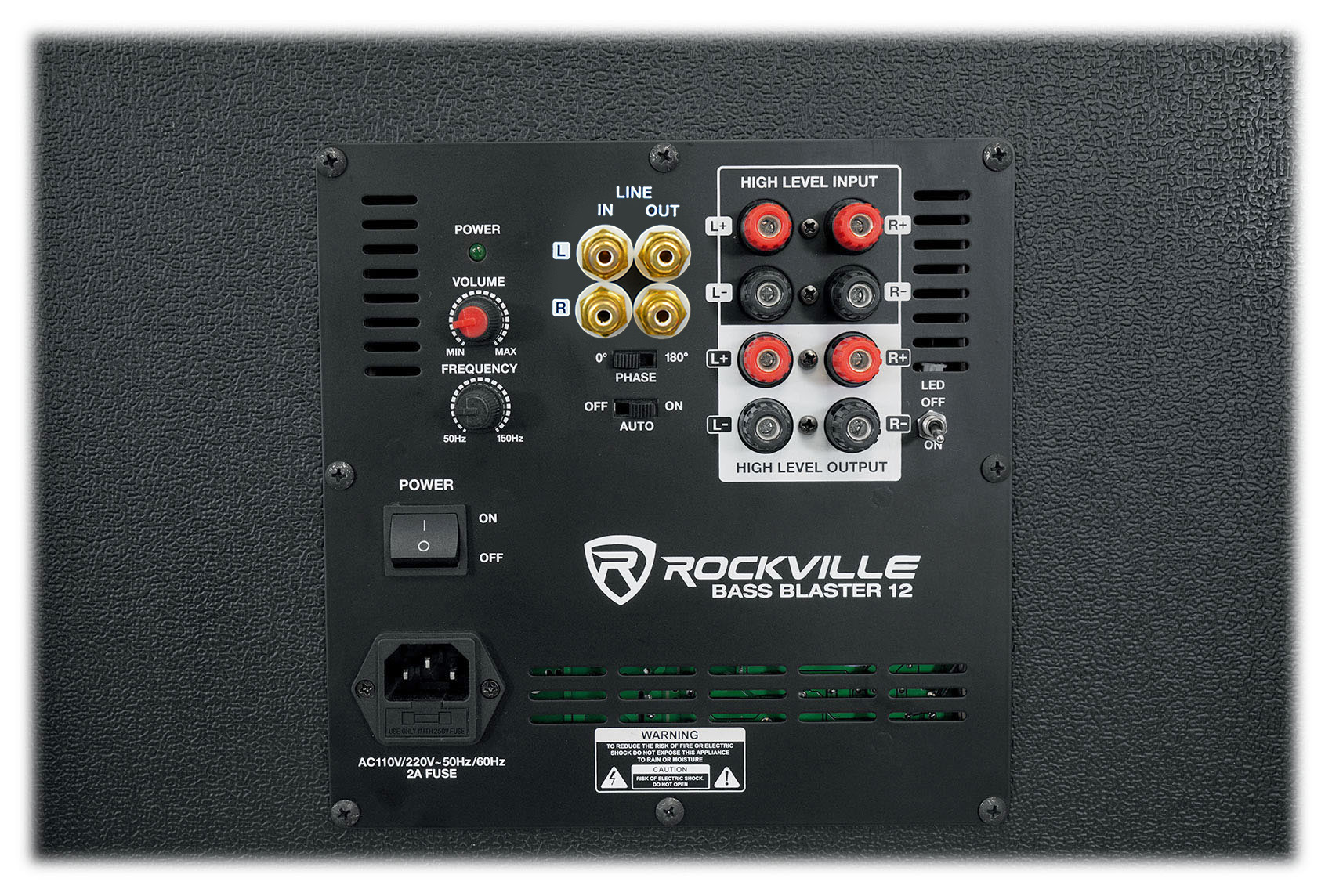 The BASS BLASTER 12 by Rockville is a powered 12" subwoofer perfect for any home theater system or studio application. It will also work for pro audio use in smaller venues. It is built rugged and tough with metal corners, and high quality MDF wood wrapped in a vinyl leather finish. The LED will pulsate to the sound of your music. So if you are playing music it will pulsate to the beat. The louder the music the brighter the LED will get. It also will pulsate to the sounds of gun shots or explosions in a movie or video game. The louder the volume the brighter they get. There is also an LED on and off switch on the back of the speaker if you decide you want to turn it off. What is really cool about this is during the day time you can't notice the LED, but when you turn off the lights it is an instant party! This is perfect for movie night, karaoke, and house party's.