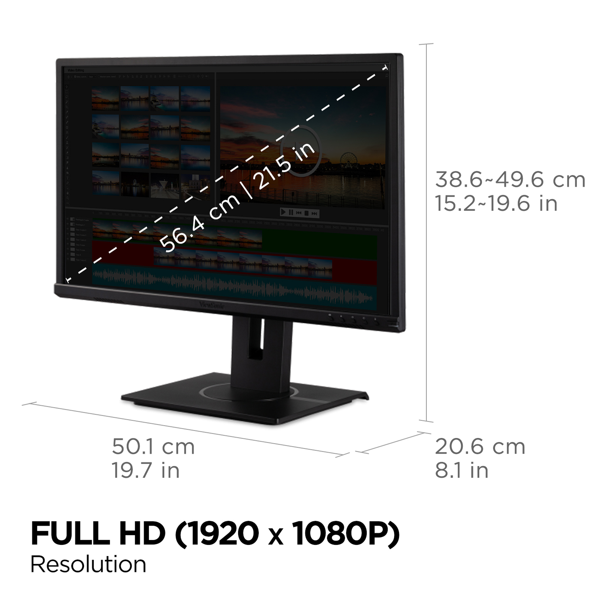 The ViewSonic VG2240 is a 22’’ (21.5’’ viewable) Full HD monitor that includes a full-range of connectivity and ergonomic functionality ideal for your workstation at the office and at home. With SuperClear® MVA panel technology for wide-angle viewing, and a true 8-bit panel with the ability to reproduce 16.7M colors, this monitor delivers incredibly sharp images. Integrated with HDMI, DisplayPort, VGA and 4 USB ports, the VG2240 allows flexible connection to PC systems, laptops and other peripheral devices and accessories. ViewSonic’s exclusive vDisplayManager software provides intuitive presets that deliver optimized screen performance in different applications. In addition, Flicker-Free and Blue Light Filter technology help to eliminate eye strain from extended viewing periods.