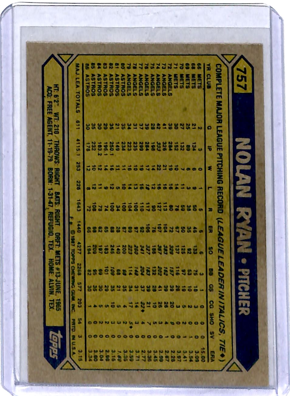 | 1987 Topps 757 Nolan Ryan |