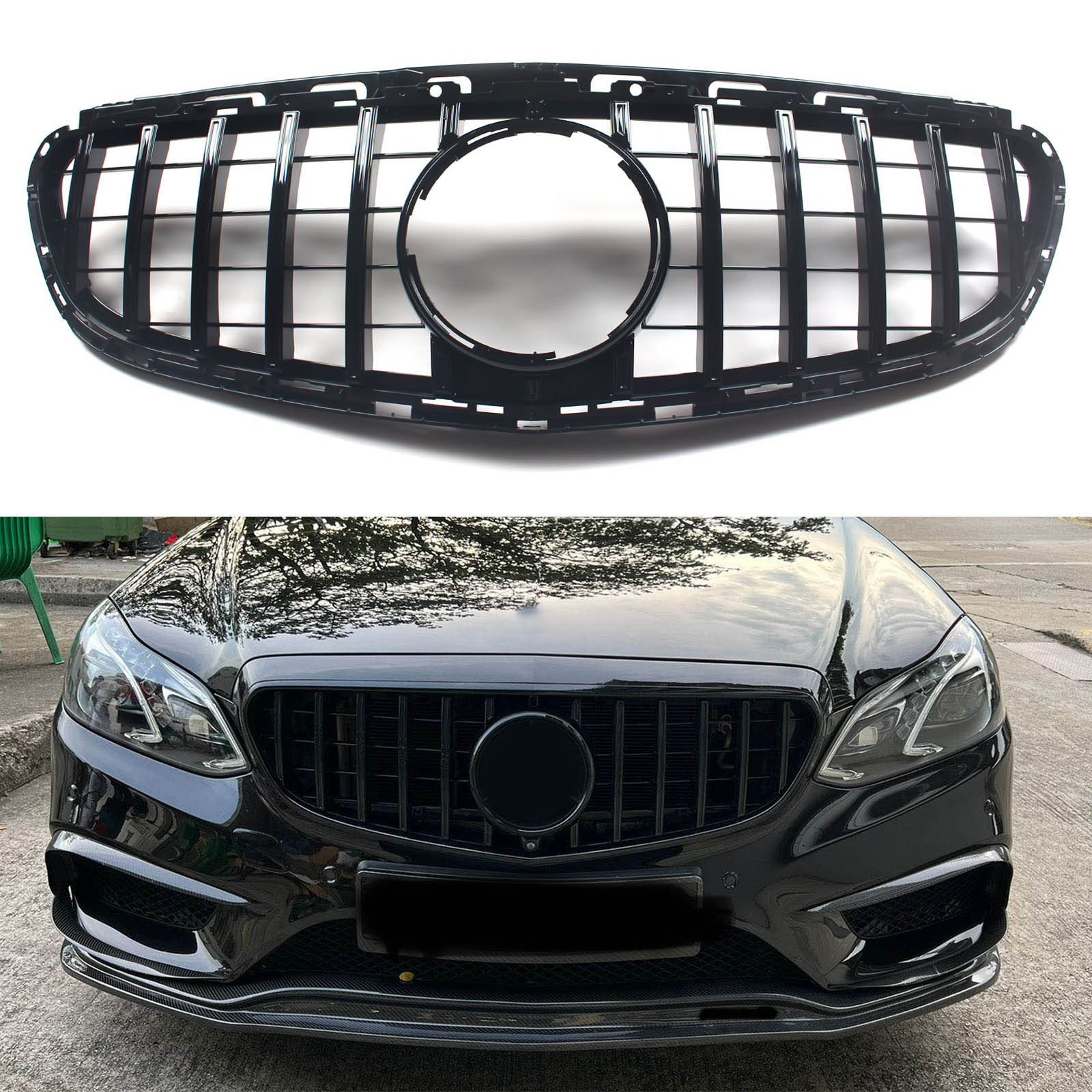 Black GT R Style Front Grille Grill For Mercedes W212 E300 E350 E400 2014-2016