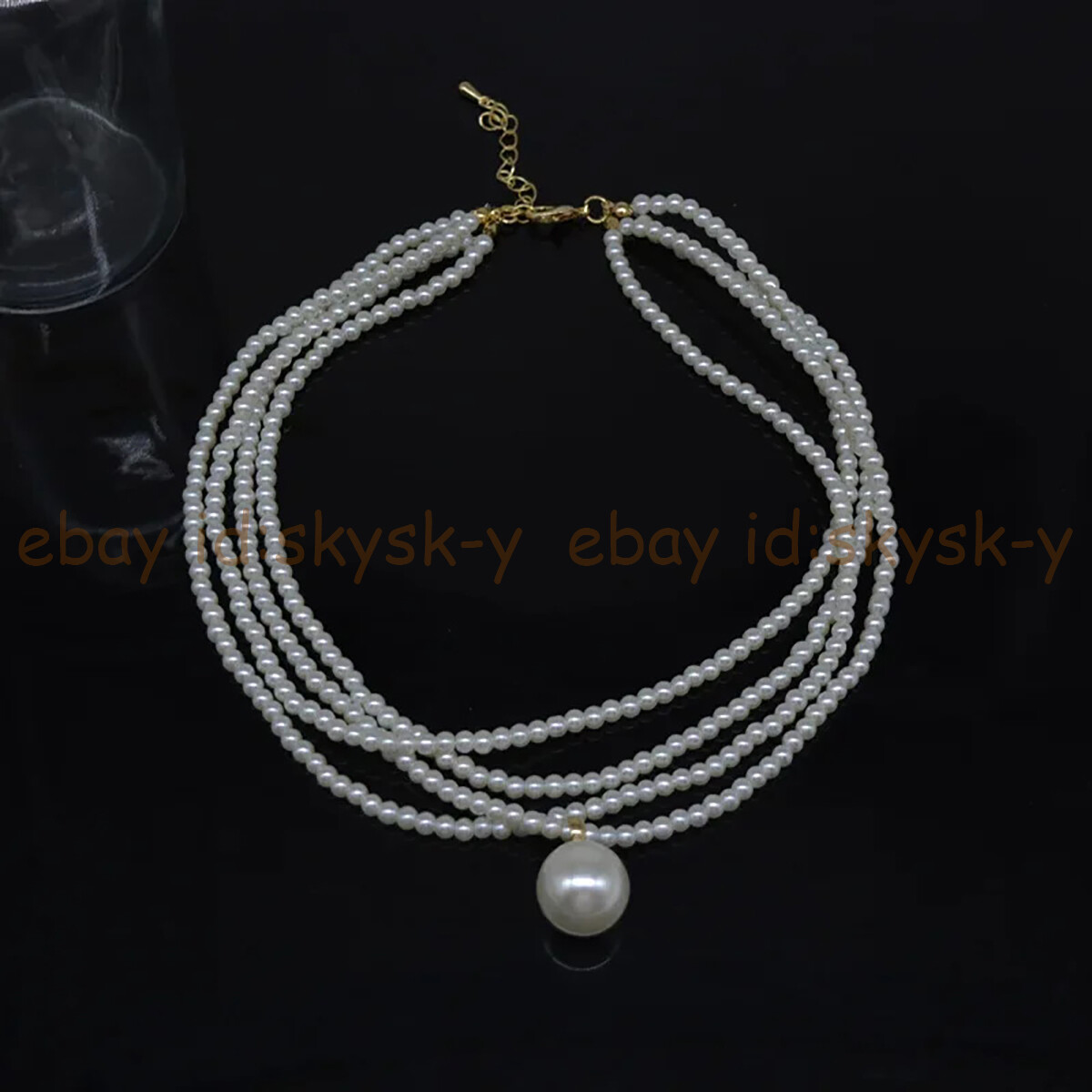 Elegant 4 Strands 6mm White South Sea Shell Pearl Round Beads Pendant Necklace