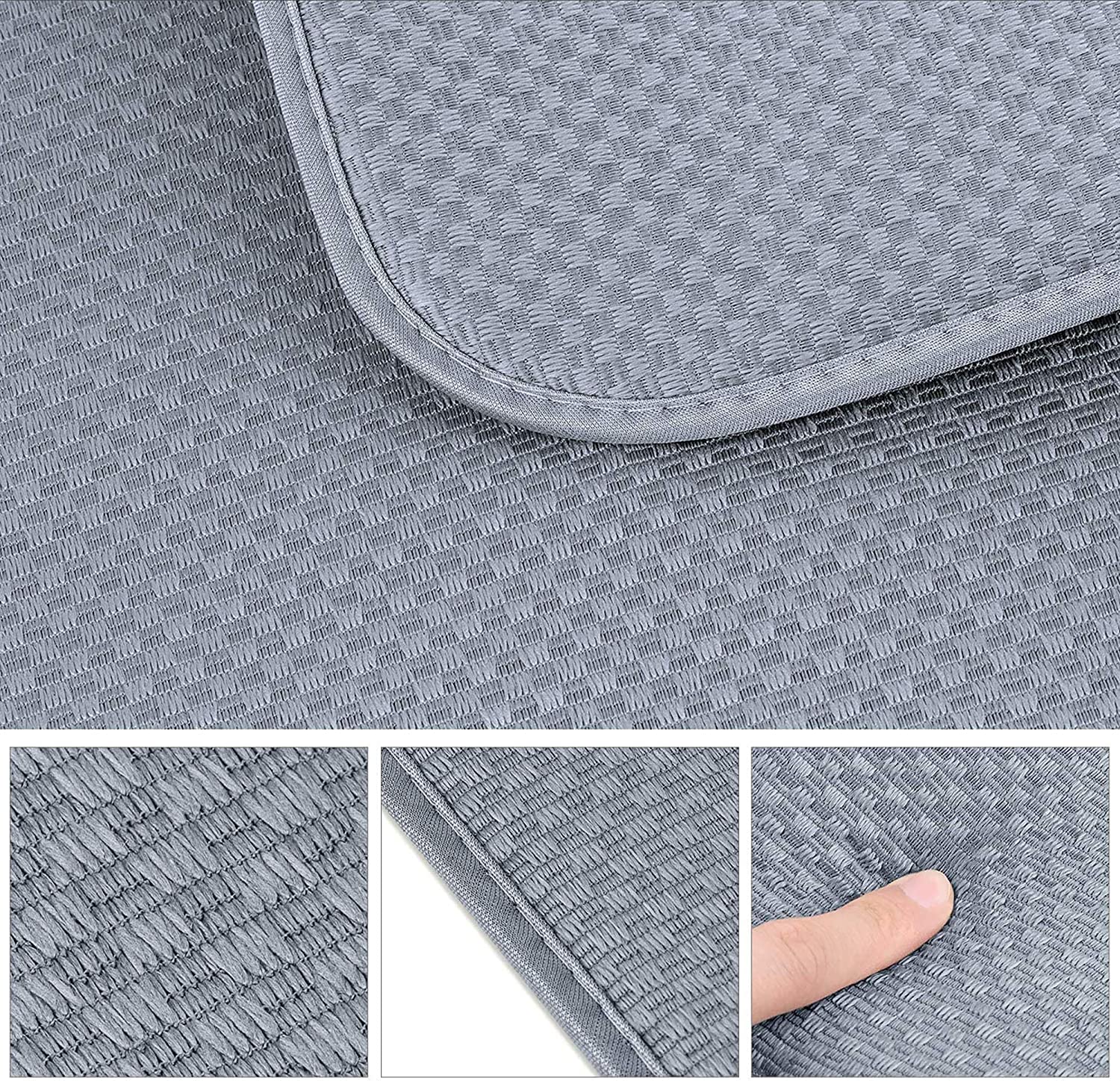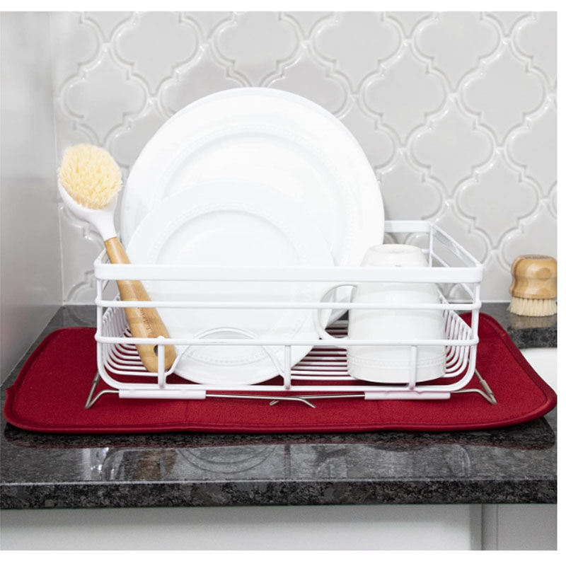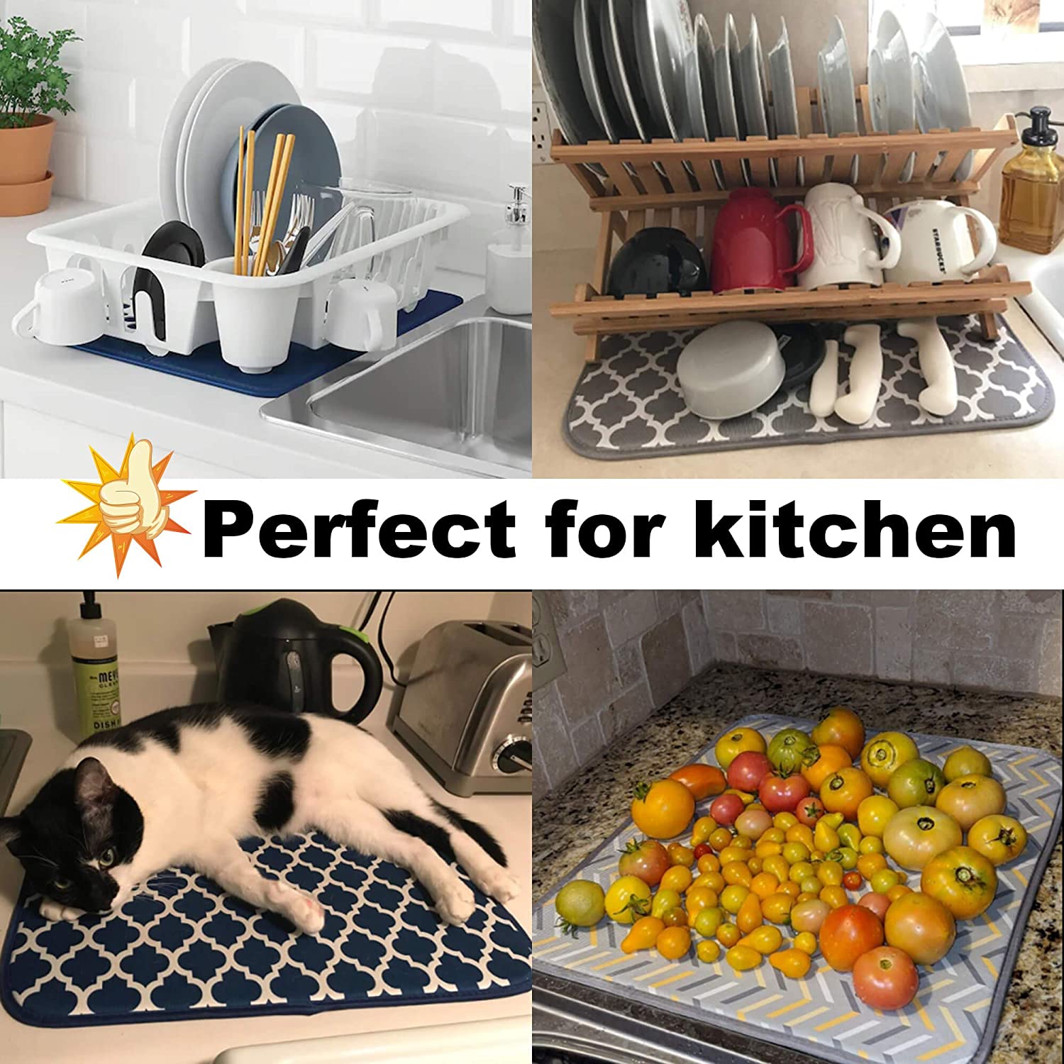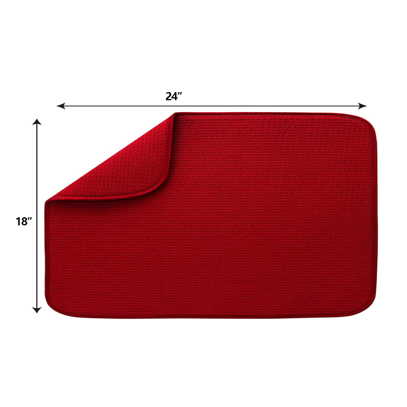Description: Color: Red, Grey, Beige Material: Absorbent Microfiber Size: 18" x 24" Feature: Super Absorbent: Made of microfiber, captures water droplets under the dish rack and quickly absorbs moisture from the dishes, keeping your dishes and countertops dry. Protects Dishes: The cushioned design prevents bowls, glassware and more from being scratched or worn, at the same time protecting your counter-top from scratches and water buildup. The back side has a non-slip design to prevent the cushion from slipping off. Easy to Store and Clean: When not in use, it can be folded up and thrown in a drawer. It's also easy to clean in the washing machine. Protect Tableware:Size:18 x 24 inches. The Drying mat Protects counter tops from scratches and scuffs,spills.Keep your antique glassware safe. Stylish Mat:Keep your counter spotless even while washing a sink full of dishes. Our superbly stylish drying mat is thick , and its innovative honeycomb microfiber structure enhances absorption and quickens drying time.Enhance your kitchen decor with this bright colorful dish drying mat. Package Included: 1PCS or 2PCS Dish Drying Mat