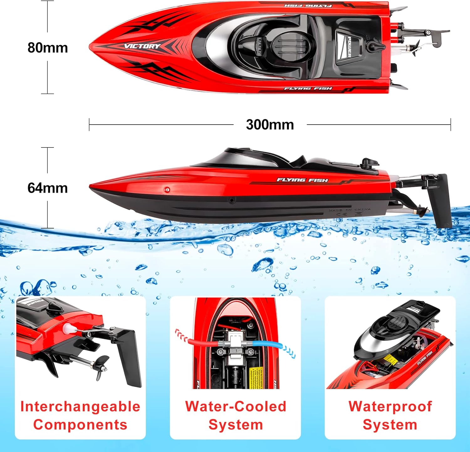 The Auto-Corrects Yaw feature allows the boat to move more freely without capsizing | Equipped with chiller magnetic drive motor and high discharge rate battery, the speed can reach 20+ MPH | This waterproof RC boat has a low battery alarm, so you can know the battery status in time and play in the outdoors |