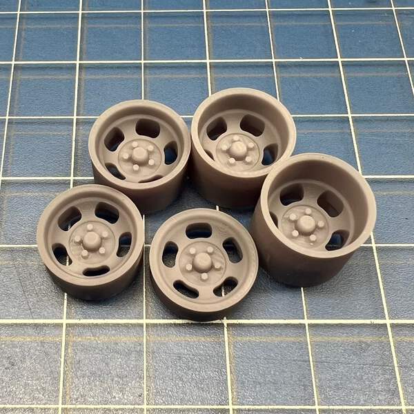 Slot Mags Wheels(American Muscle Series) These fit any of our Street Meat Series tires.Sold in pairs.Each set includes 2 wheels (no tires). 5 widths to choose from: Scale size Actual size 15x6 16.5 x 6.4 mm 15x8 16.5 x 8.4 mm 15x10 16.5 x 10.4 mm 15x12 16.5 x 12.4 mm 15x14 16.5 x 15.4 mm Measurements are +/- 0.2mm These come in raw resin. Wheels may be a tight fit for some of the tires. Tires are not sanded, support contact divots will be present on backside. This is easily removed with sanding. Some sanding may be needed to properly fit, clean, and prepare for primer and paint. If you are not familiar with resin, please research before purchasing. As with all resin, this may need some work like sanding smooth, cleaning flash resin, evening out surfaces, filling pinholes, and/or fabricating parts.