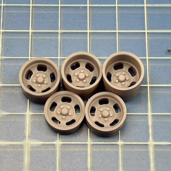 These come in raw resin. Wheels may be a tight fit for some of the tires. Tires are not sanded, support contact divots will be present on backside.  This is easily removed with sanding. Some sanding may be needed to properly fit, clean, and prepare for primer and paint.