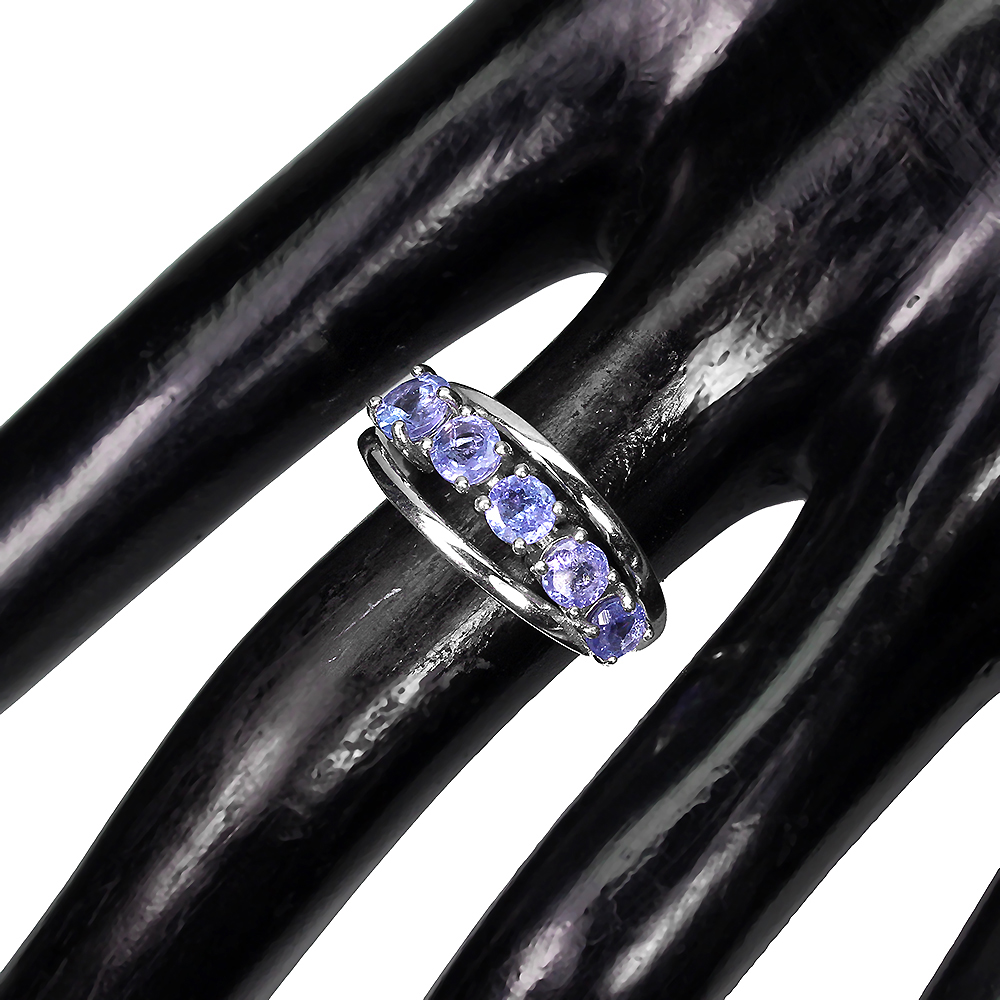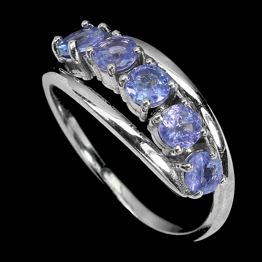 Unheated Round Tanzanite 5mm 14K White Gold Plate 925 Sterling Silver Ring 8.5