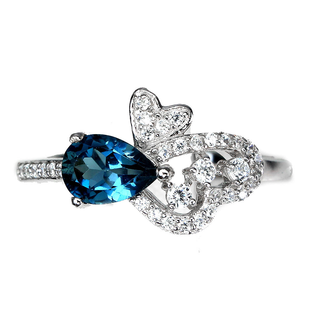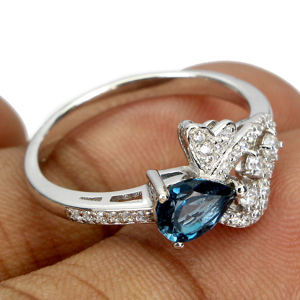 Irradiated Pear London Blue Topaz 7x5mm Simulated Cz 925 Sterling Silver Ring 9