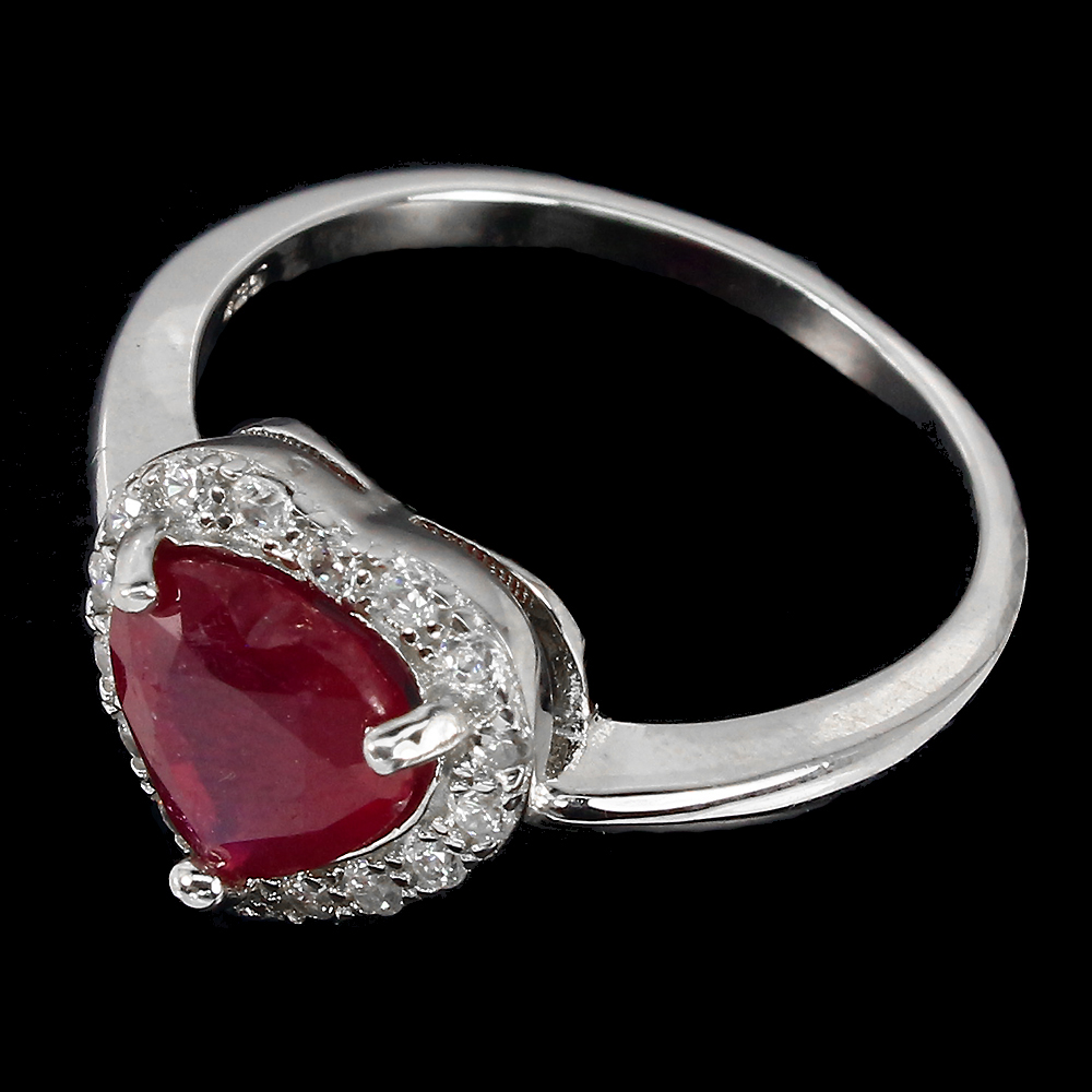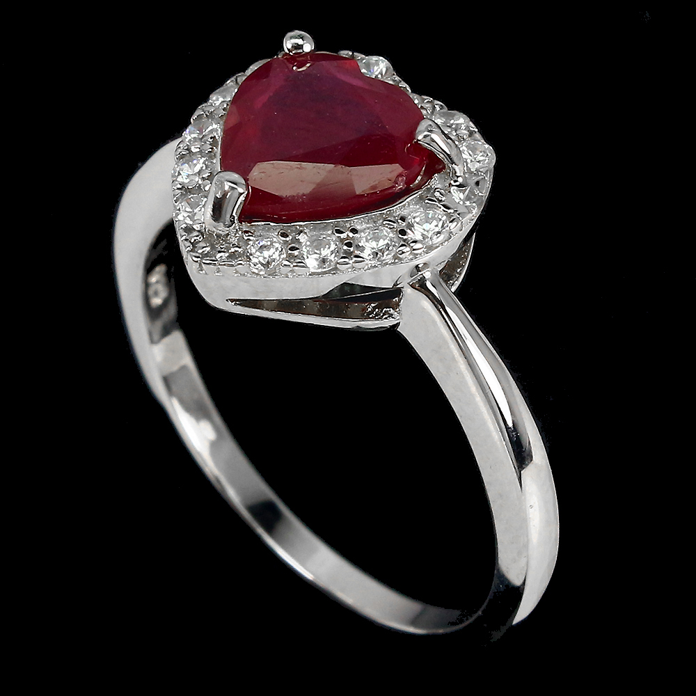 Heart Red Ruby 8mm White Cz 14K White Gold Plate 925 Sterling Silver Ring