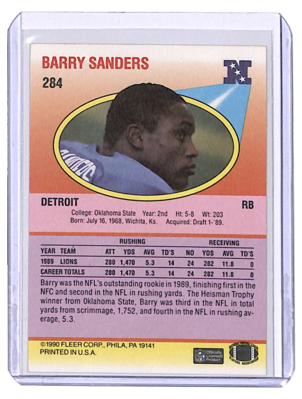 | Description: | Barry Sanders | | Category: | Football | | Year: | 1990 | | Product: | Fleer | | Team: | Detroit Lions | | Card Number: | 284 | | Dimensions: | 4¼" x 3" |