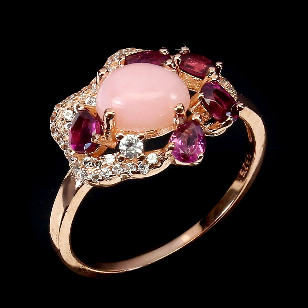Unheated Oval Pink Opal 8x6mm White Topaz Gems 925 Sterling Silver Ring Size 9