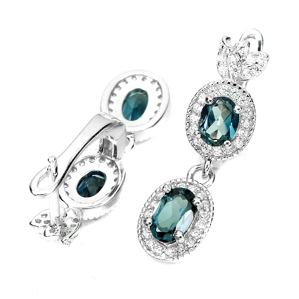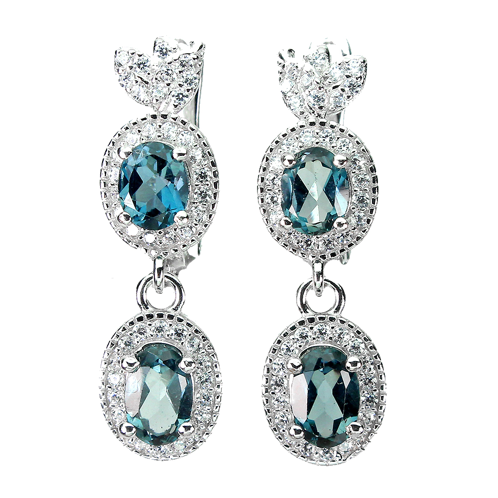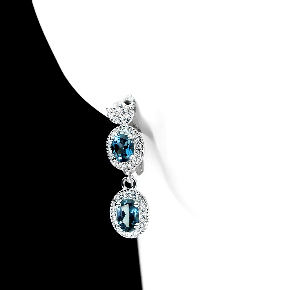 Irradiated London Blue Topaz 6x4mm Simulated Cz 925 Sterling Silver Earrings