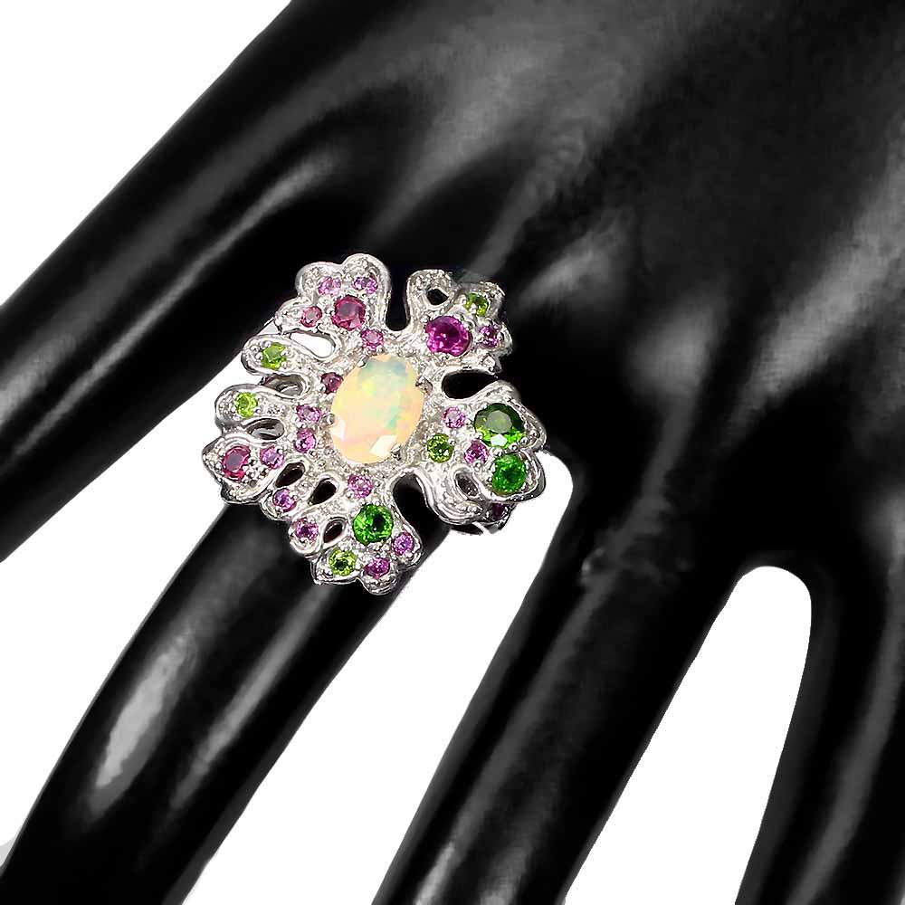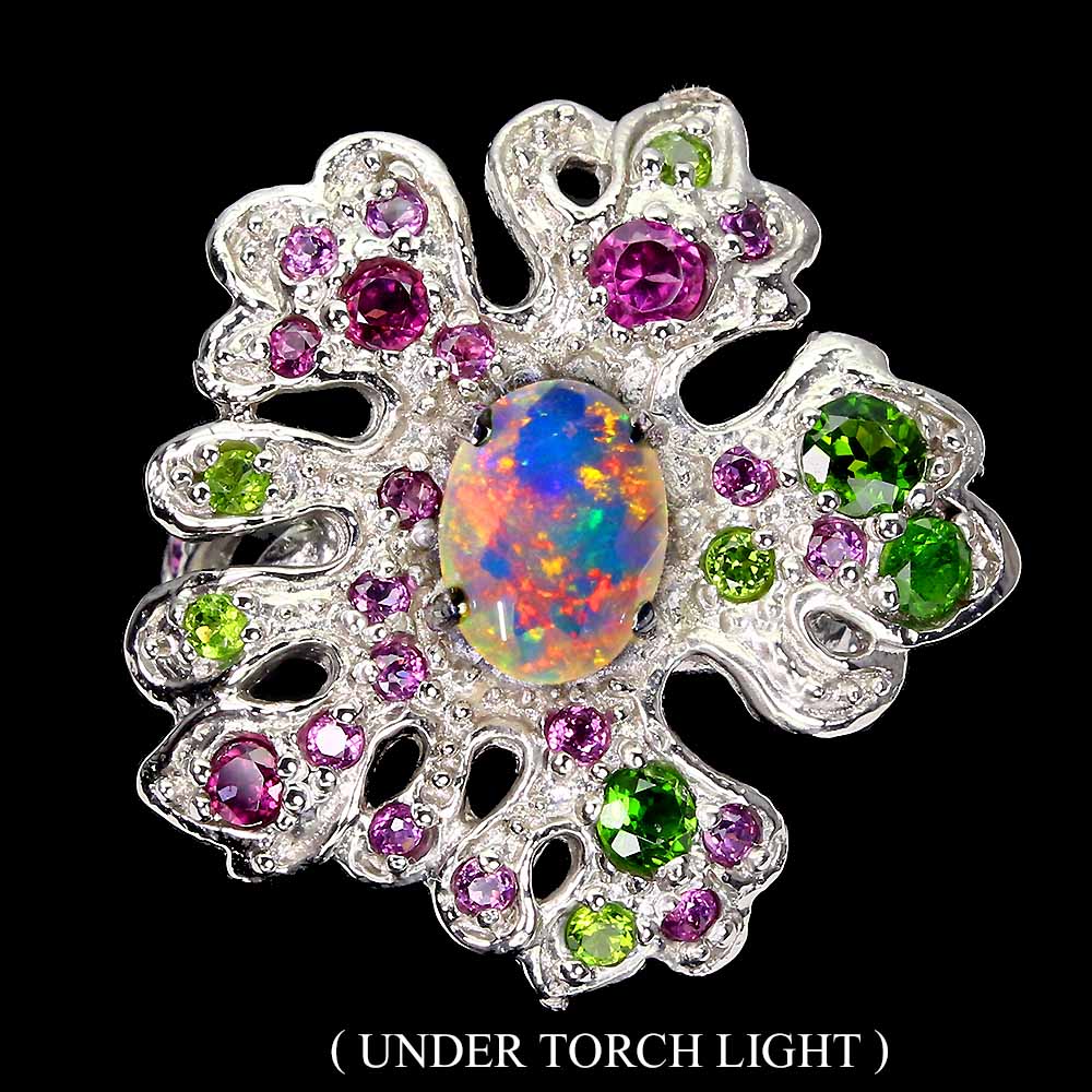 Unheated Oval Fire Opal 8x6mm Chrome Diopside Gems 925 Sterling Silver Ring 7.5