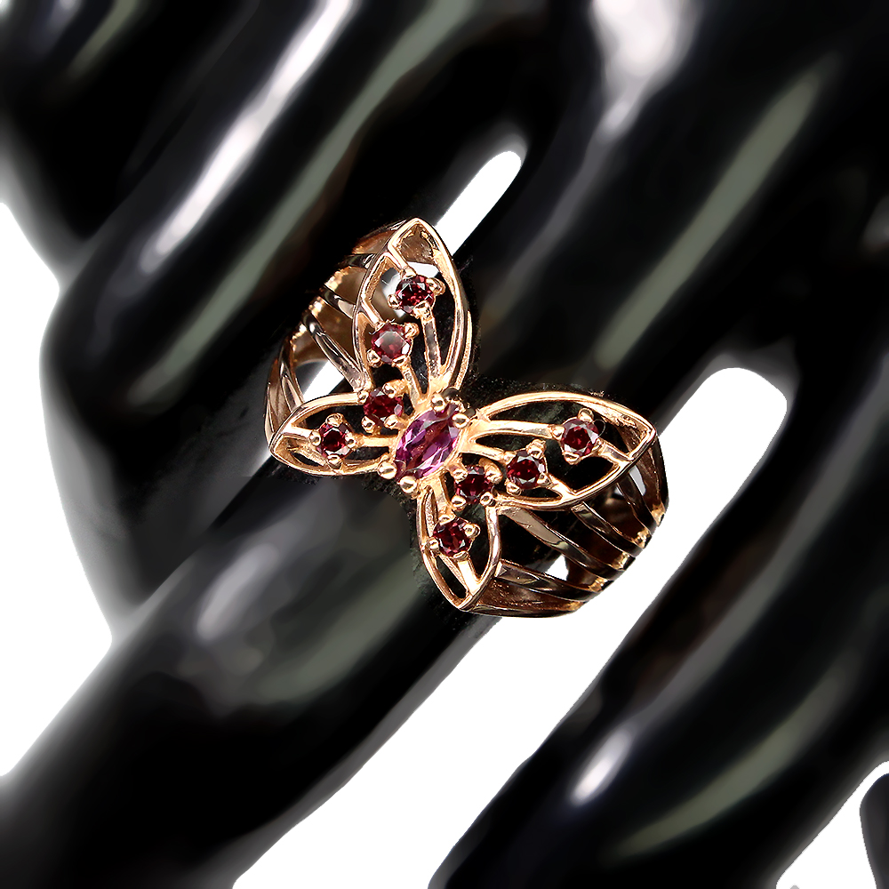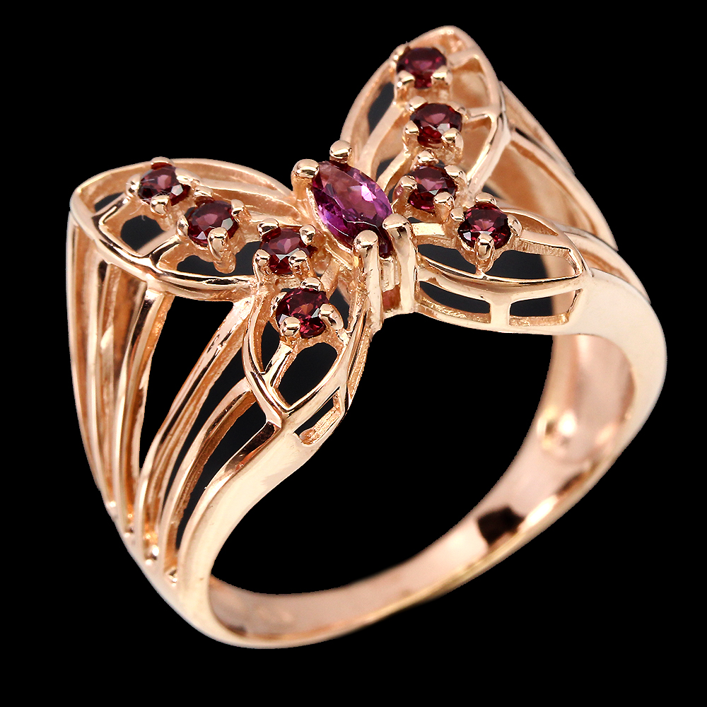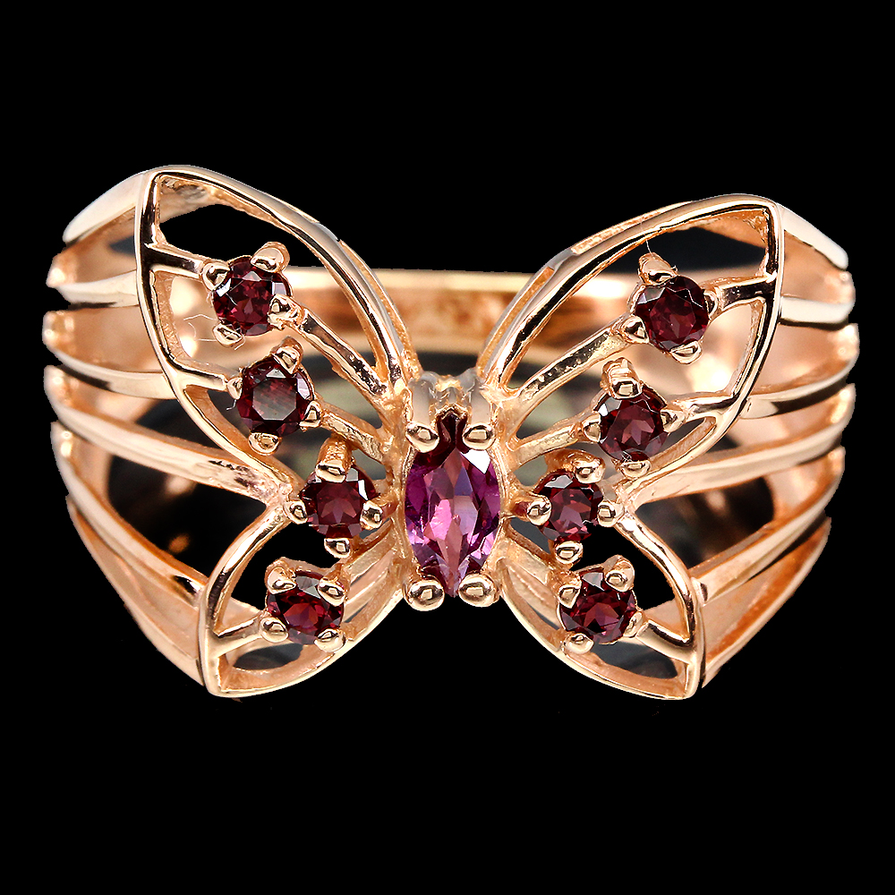 Unheated Marquise Rhodolite Garnet Rose Gold Plate 925 Sterling Silver Ring 9