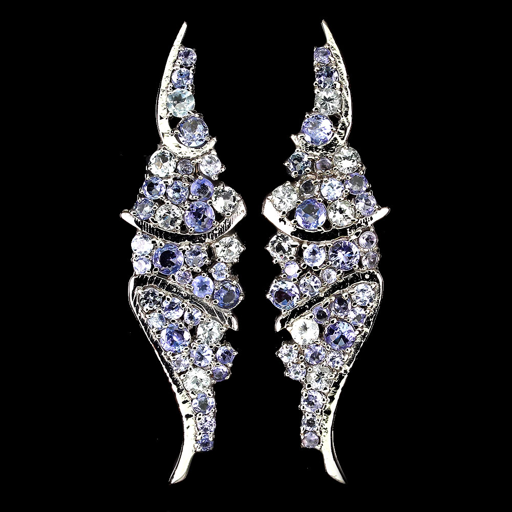 Unheated Round Blue Aquamarine 3.5mm Tanzanite 925 Sterling Silver Earrings