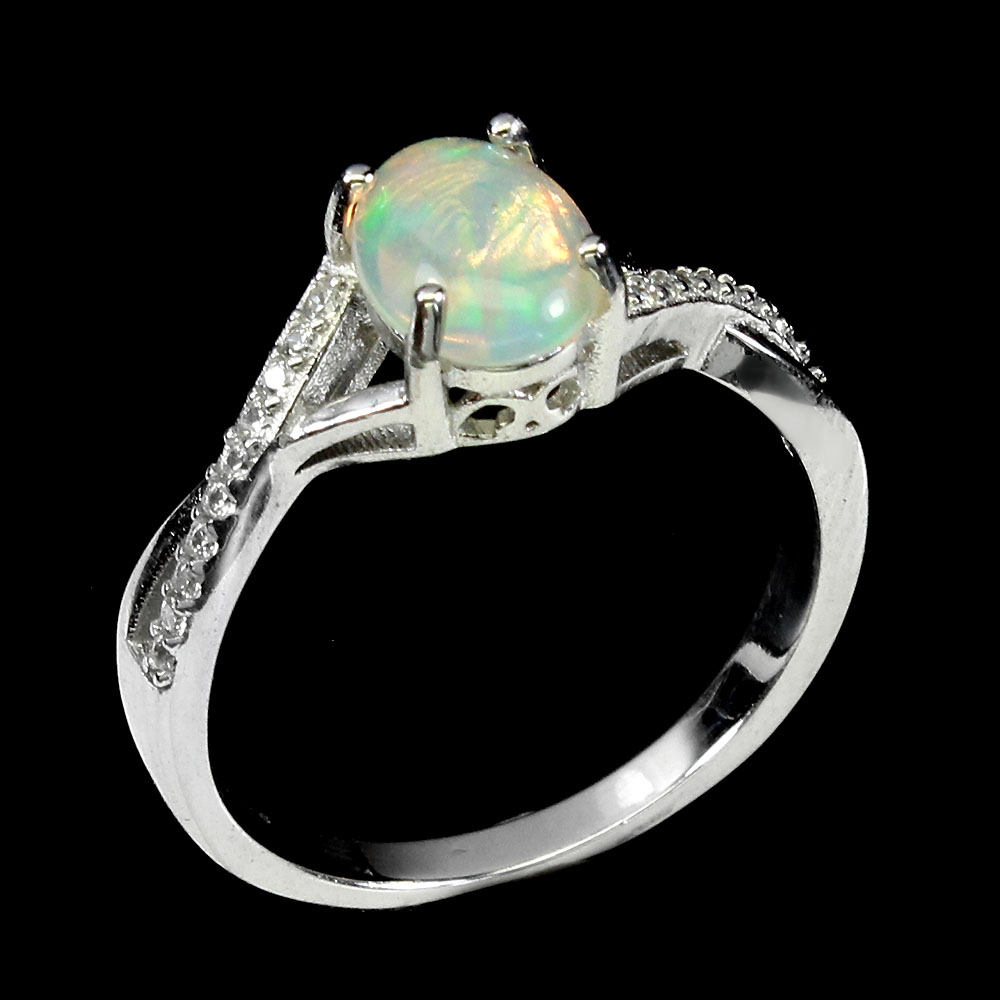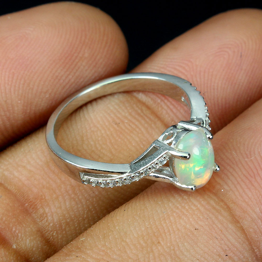 Unheated Oval Fire Opal Rainbow 8x6mm Simulated Cz 925 Sterling Silver Ring 7