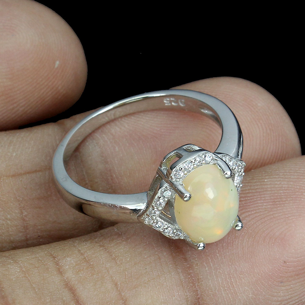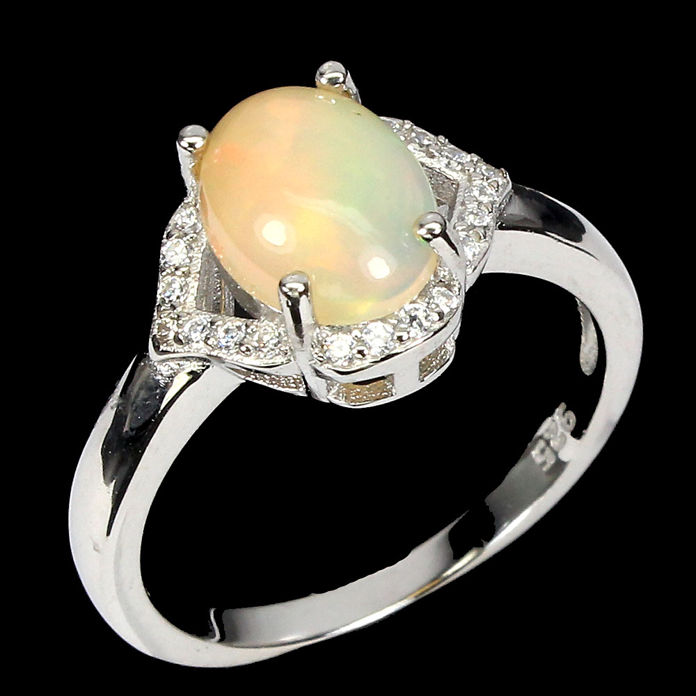 Unheated Oval Fire Opal 9x7mm White Topaz 925 Sterling Silver Ring Size 7