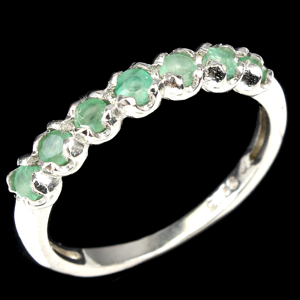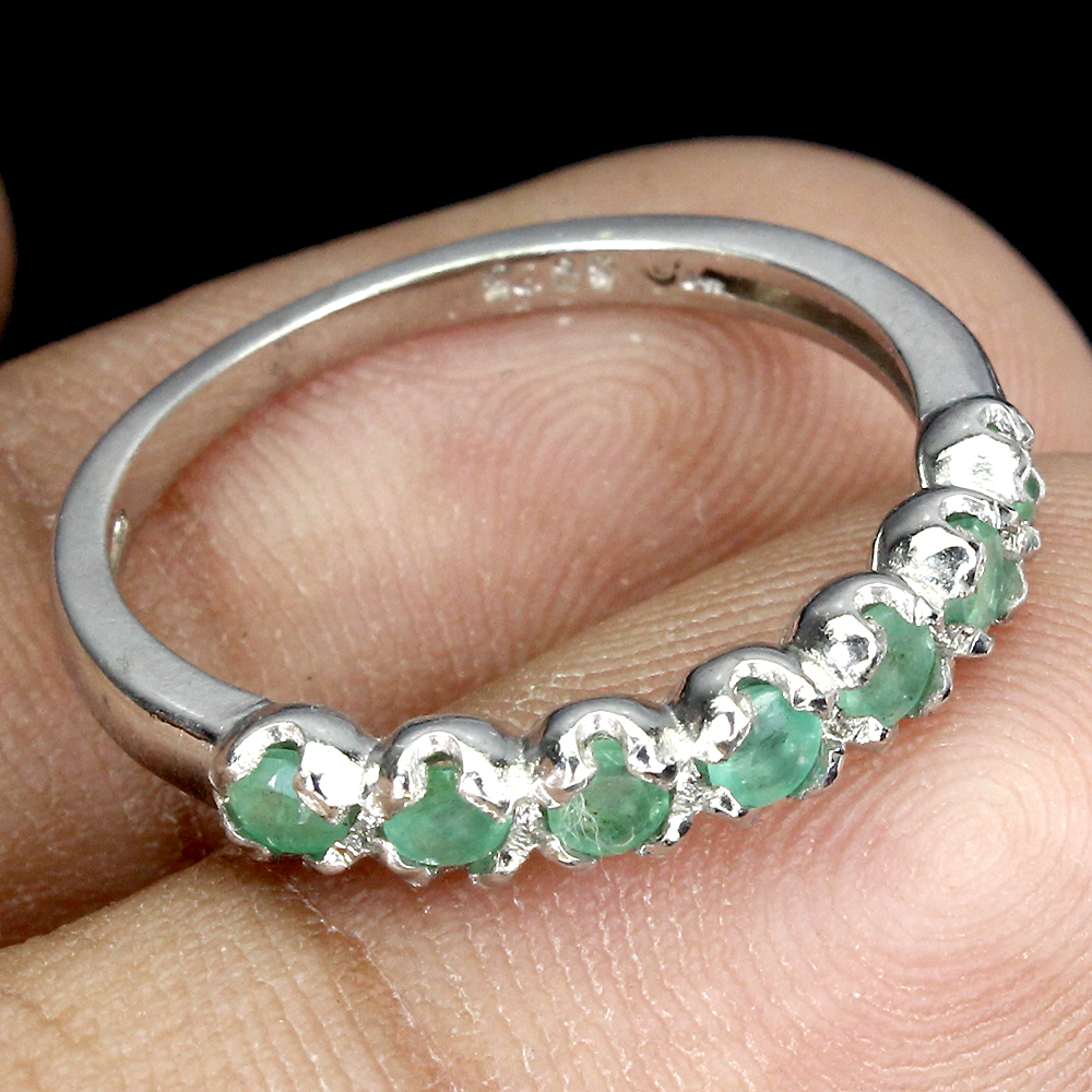Unheated Round Emerald 2.5mm 14K White Gold Plate 925 Sterling Silver Ring