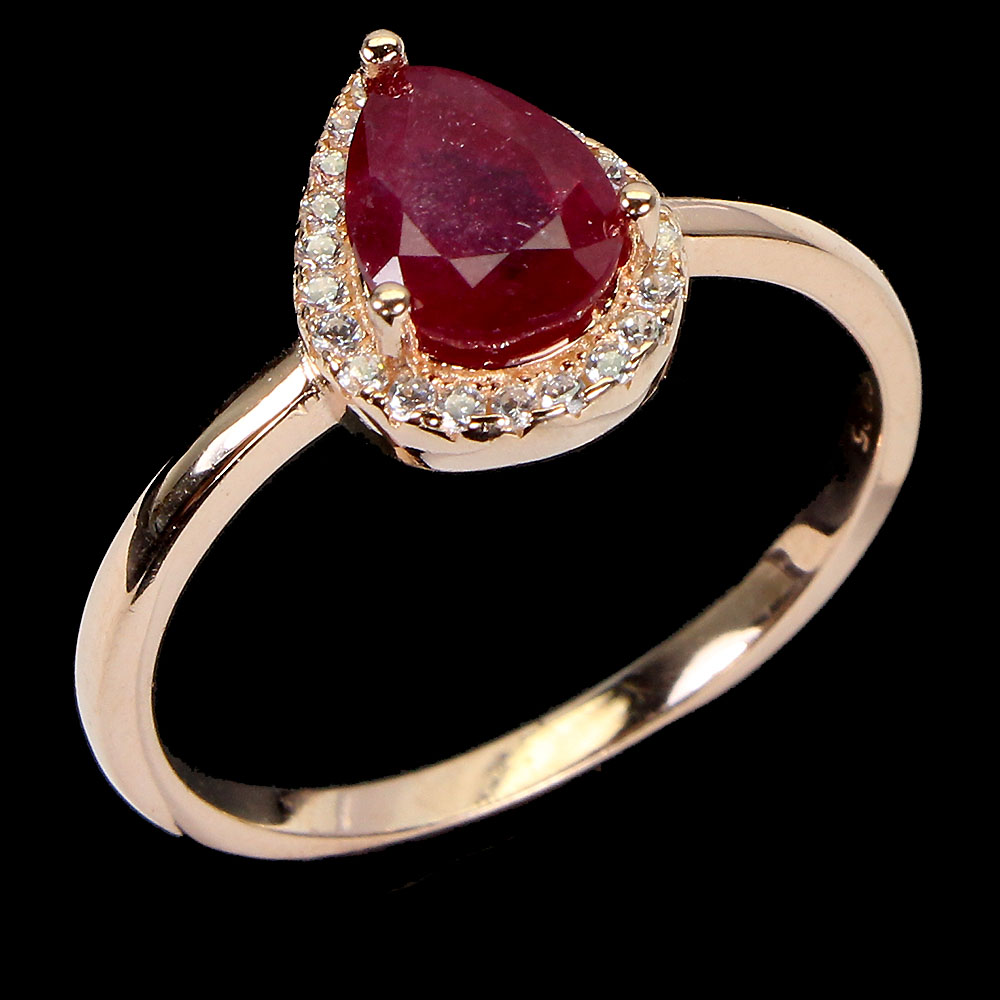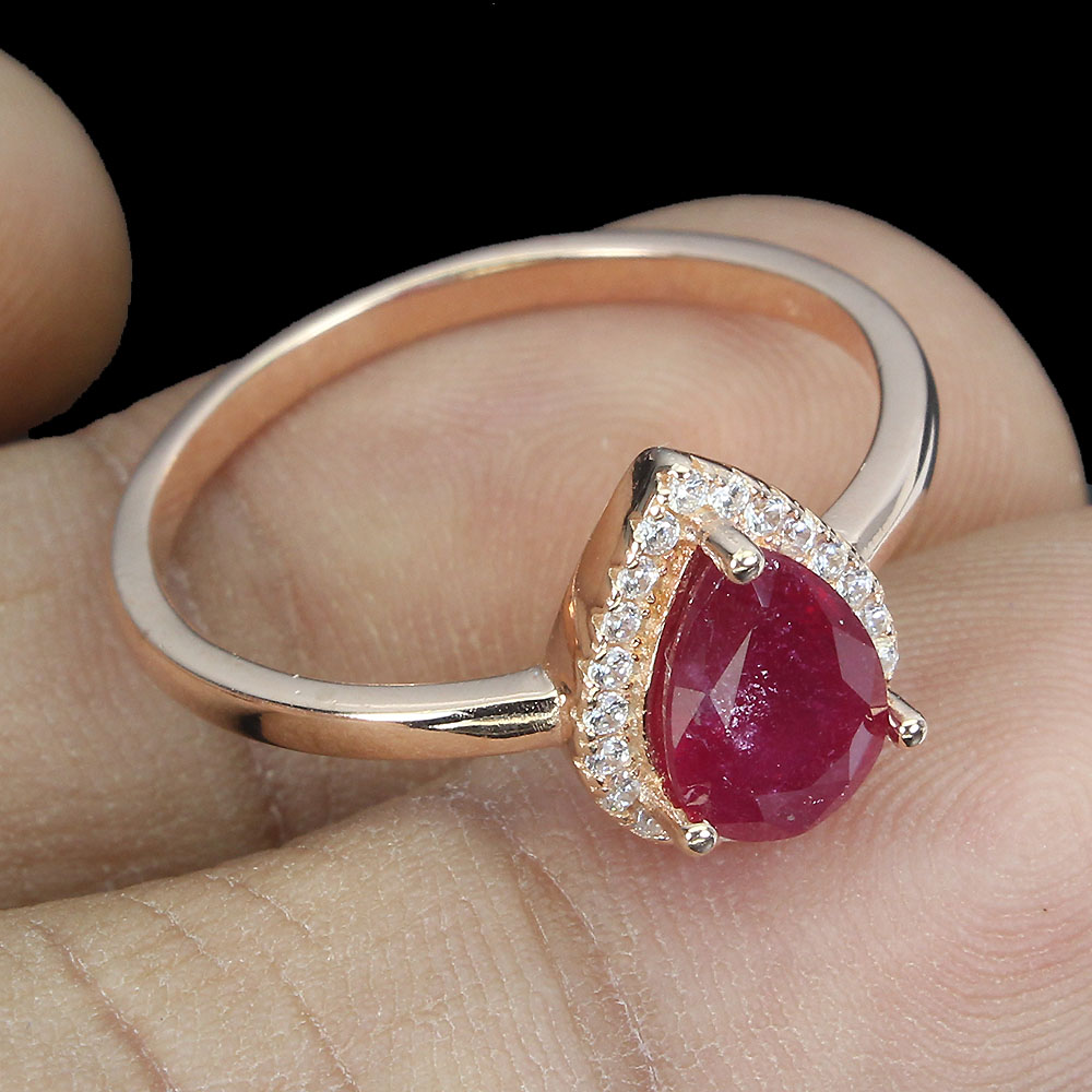 Heated Pear Ruby 8x6mm Simulated Cz Rose Gold Plate 925 Sterling Silver Ring 9.5