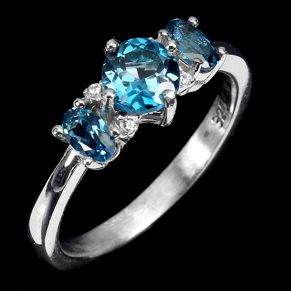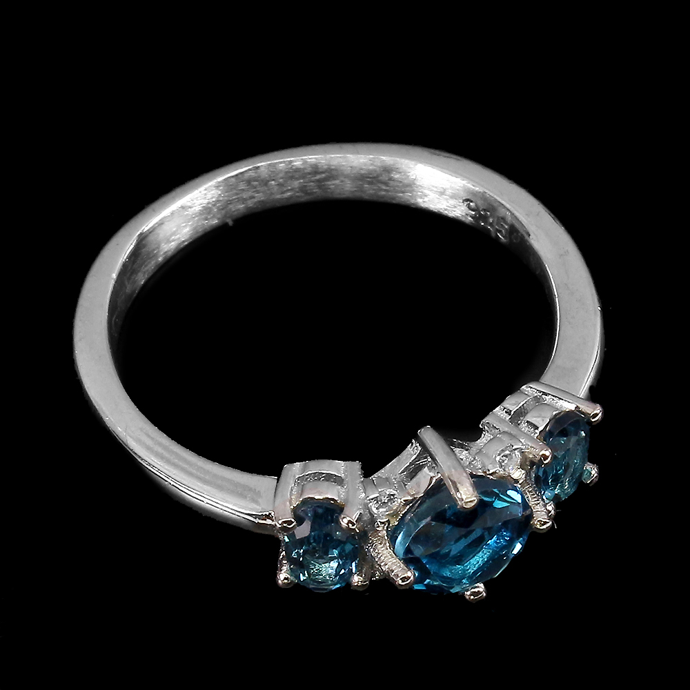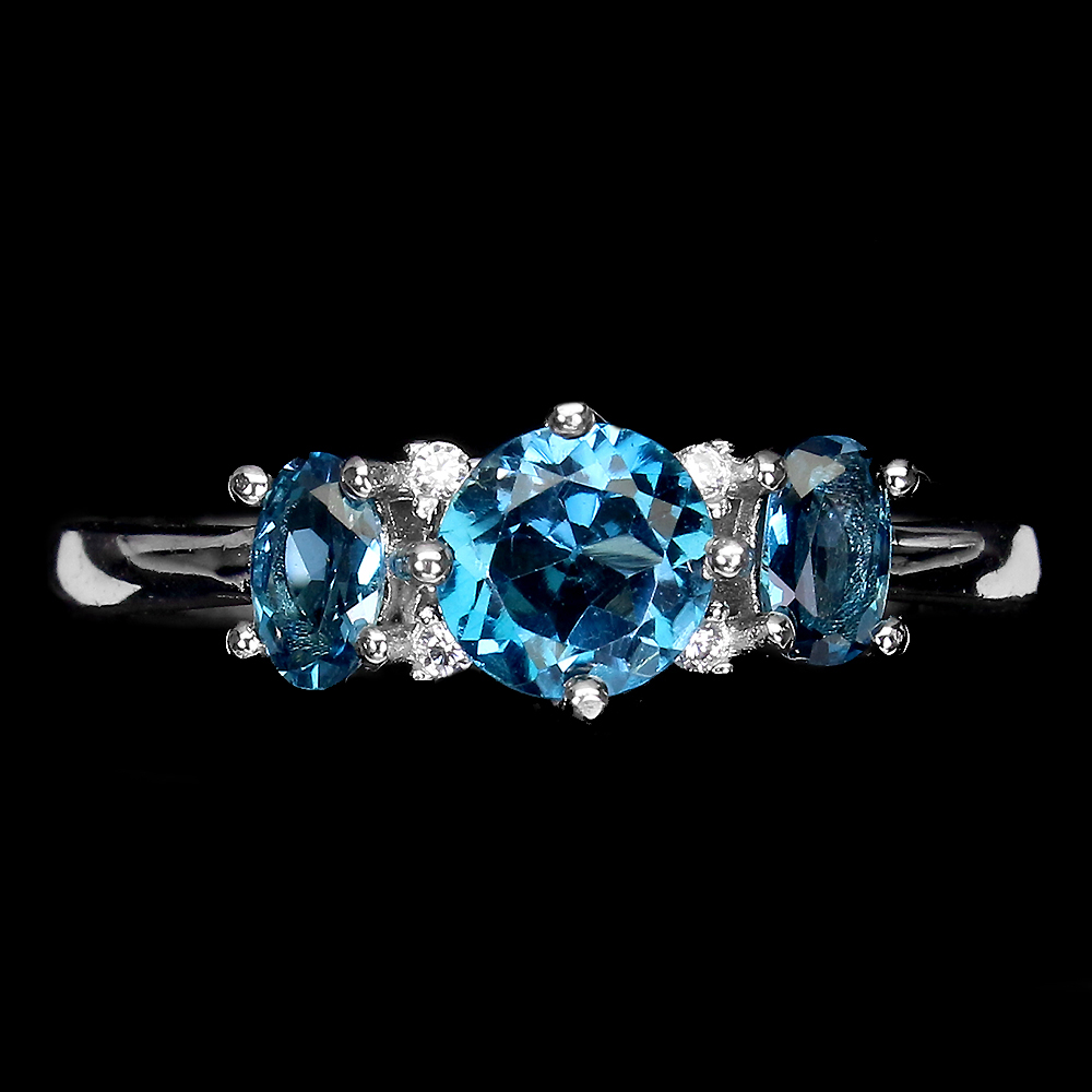Round London Blue Topaz 6mm 14K White Gold Plate 925 Sterling Silver Ring