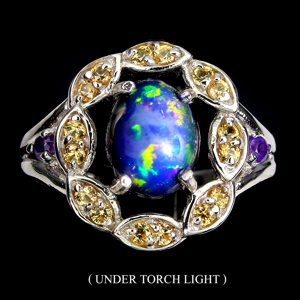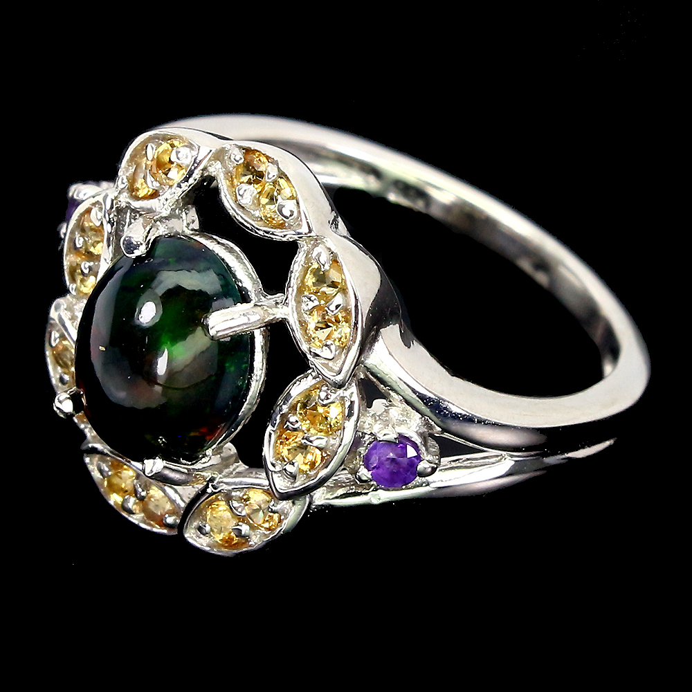 Oval Black Opal 9x7mm Amethyst Sapphire Diamond Cut 925 Sterling Silver Ring 7