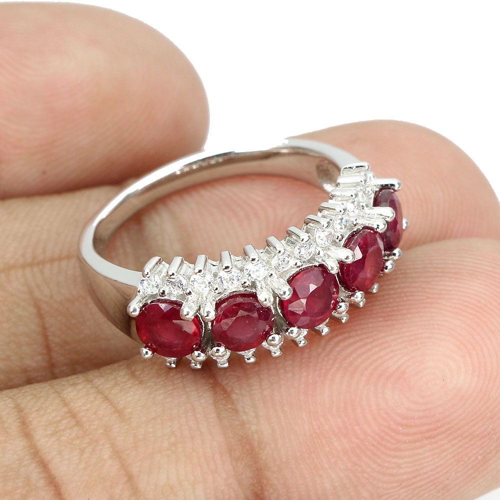 Heated Round Ruby 4mm Simulated Cz White Gold Plate 925 Sterling Silver Ring 8
