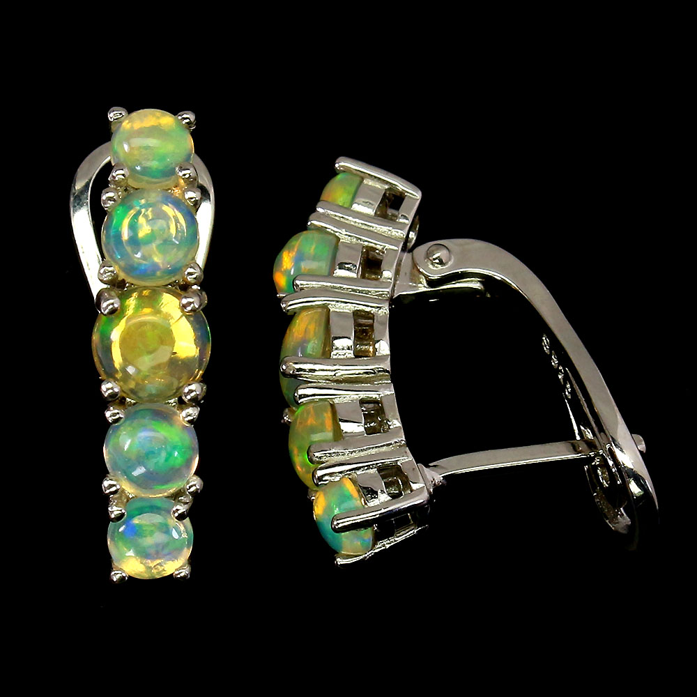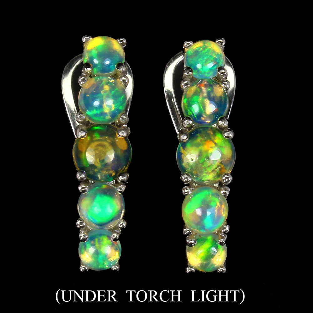 Unheated Oval Fire Opal Rainbow Full Flash 5mm 925 Sterling Silver Earrings