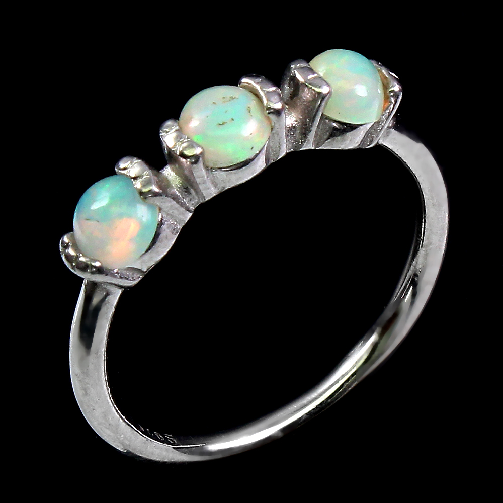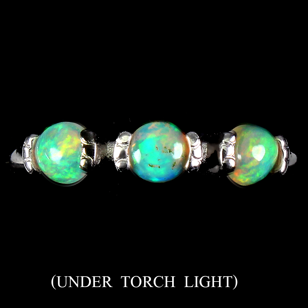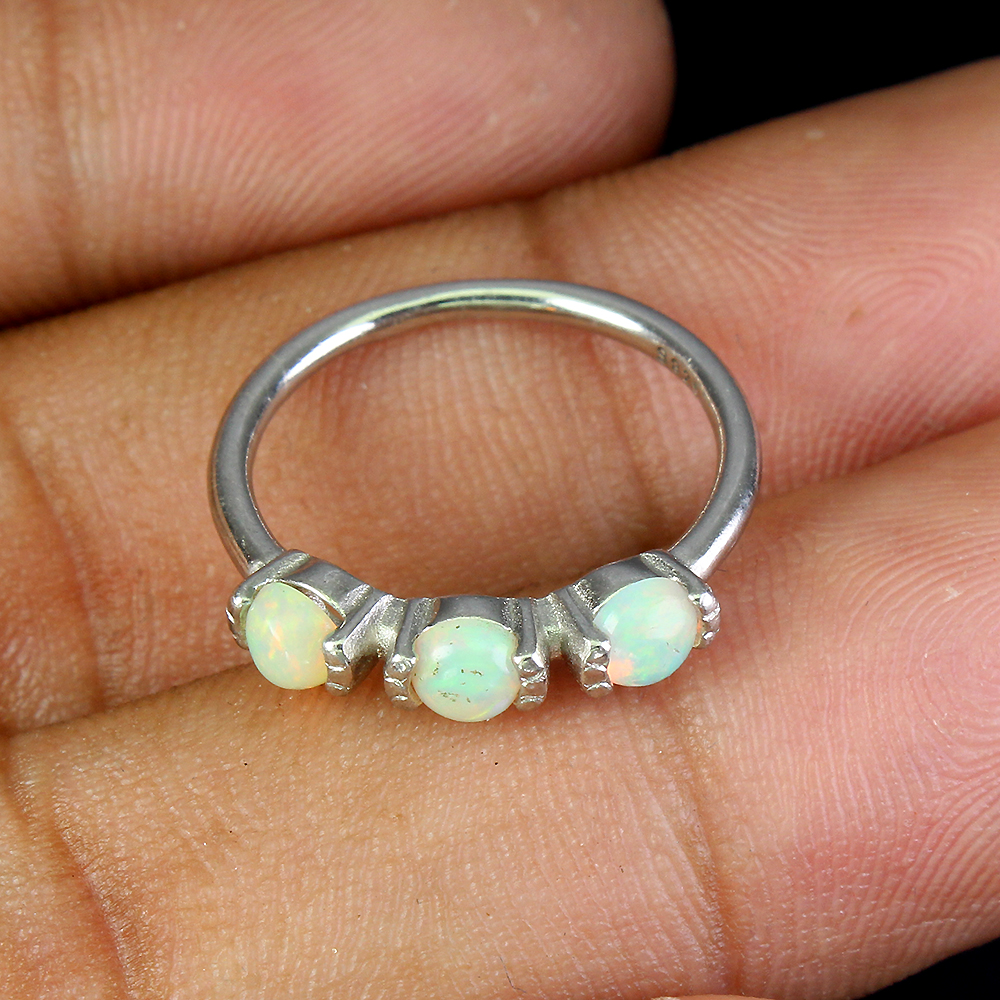 Unheated Round Fire Opal Rainbow Full Flash 4mm 925 Sterling Silver Ring