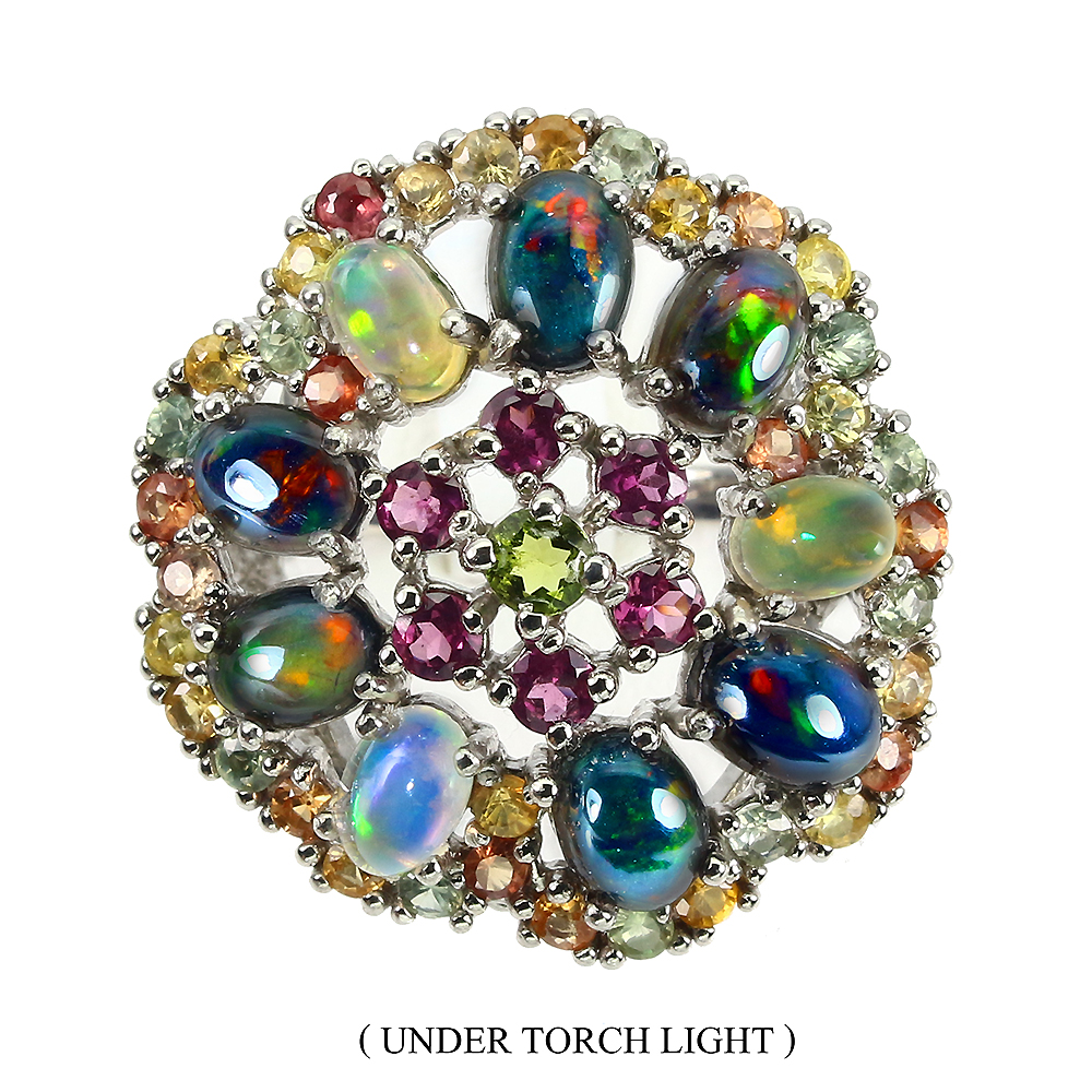 Chrome Diopside, Fire Opal, Rhodolite Garnet, Sapphire