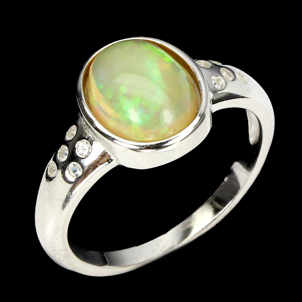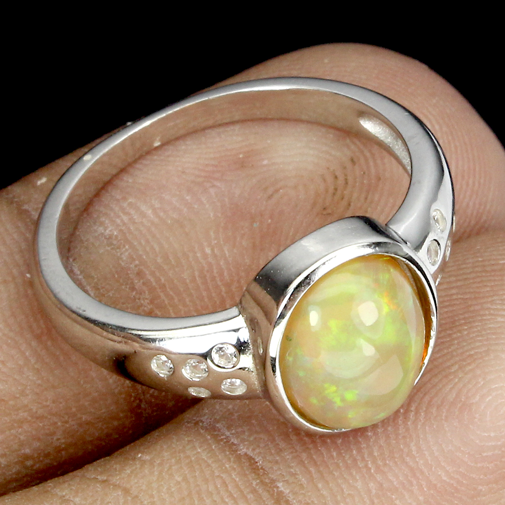 Unheated Oval Fire Opal Rainbow 10x8mm White Topaz 925 Sterling Silver Ring