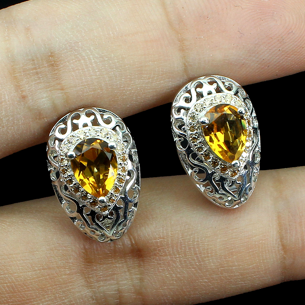 * STONE 8.0 X 6.0 MM. * CZ 1.0MM. * FACE EARRINGS 19.0 X 12.0 MM.