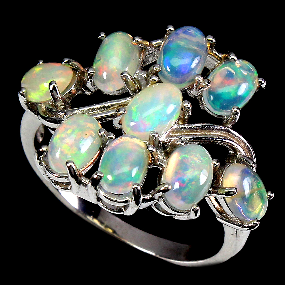 Unheated Oval Fire Opal Rainbow Full Flash 6x4mm Cz 925 Sterling Silver Ring