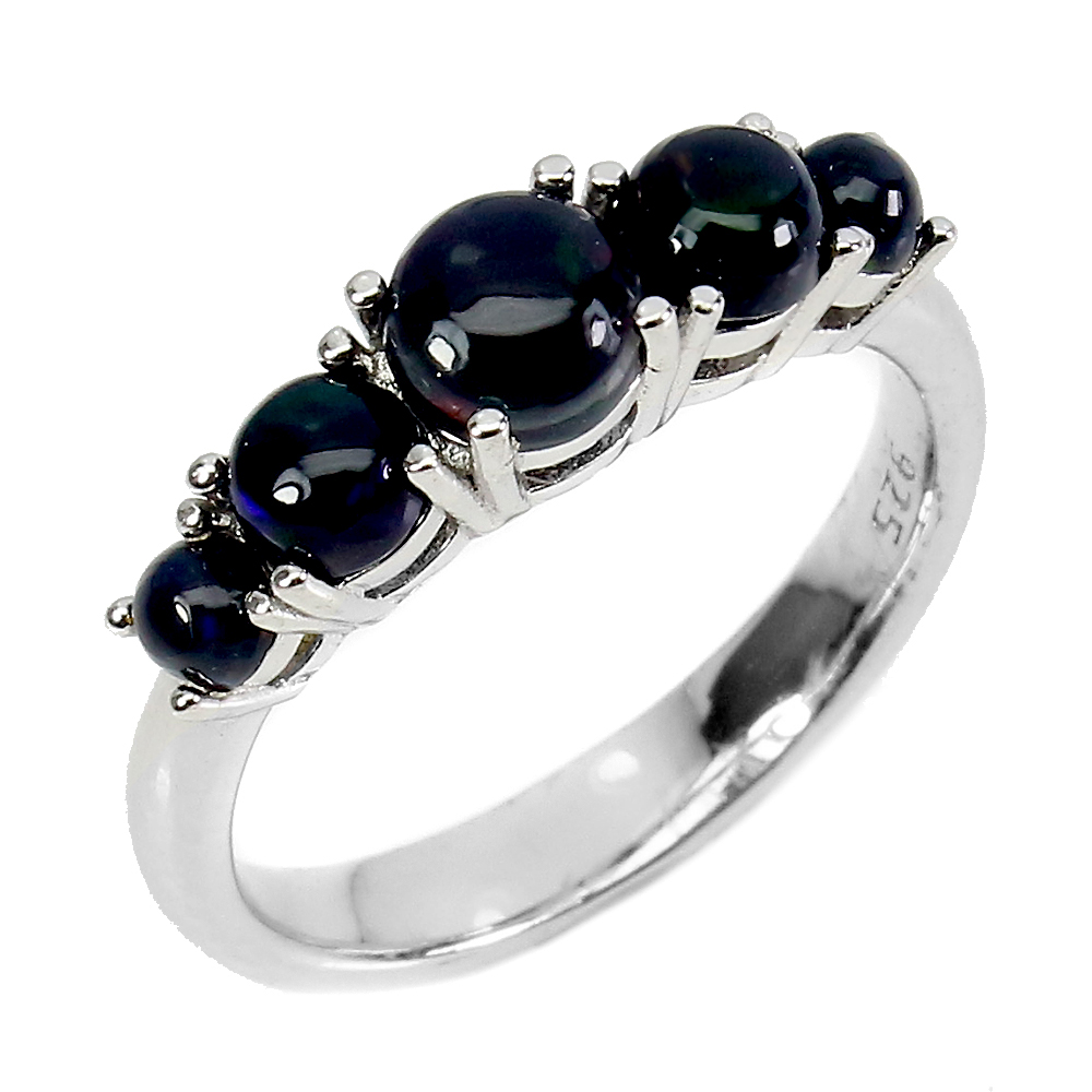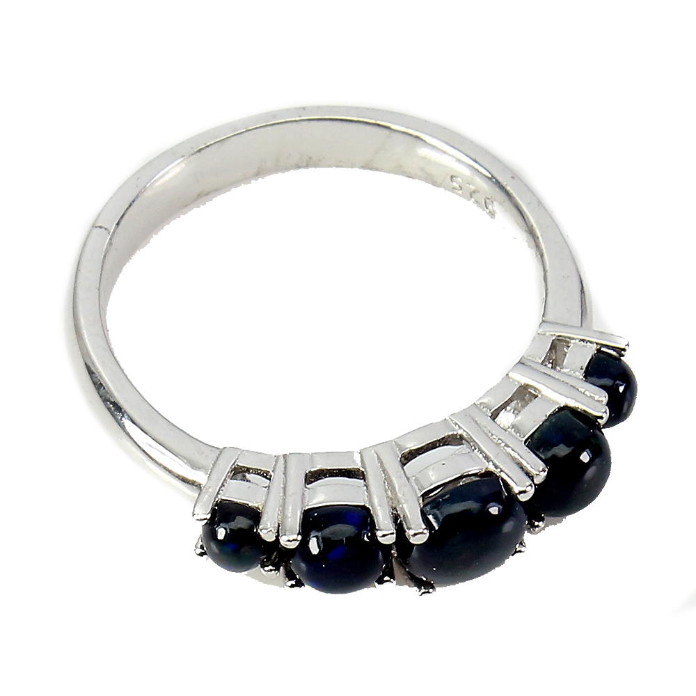 Round Black Opal Rainbow 5mm 14K White Gold Plate 925 Sterling Silver Ring