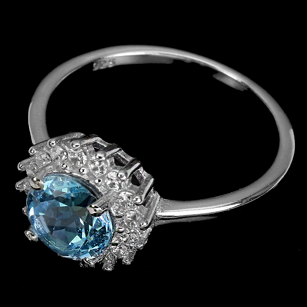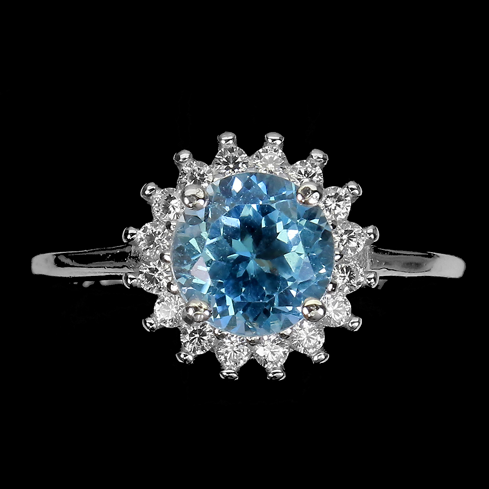 Irradiated Round Sky Blue Topaz 7mm Simulated Cz 925 Sterling Silver Ring
