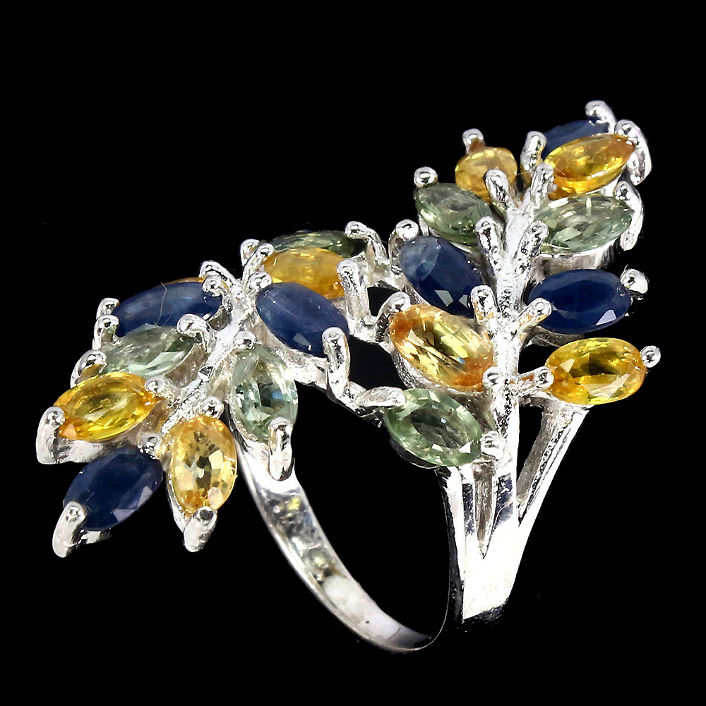 Marquise Sapphire Multi-Color 5x3mm White Gold Plate 925 Sterling Silver Ring