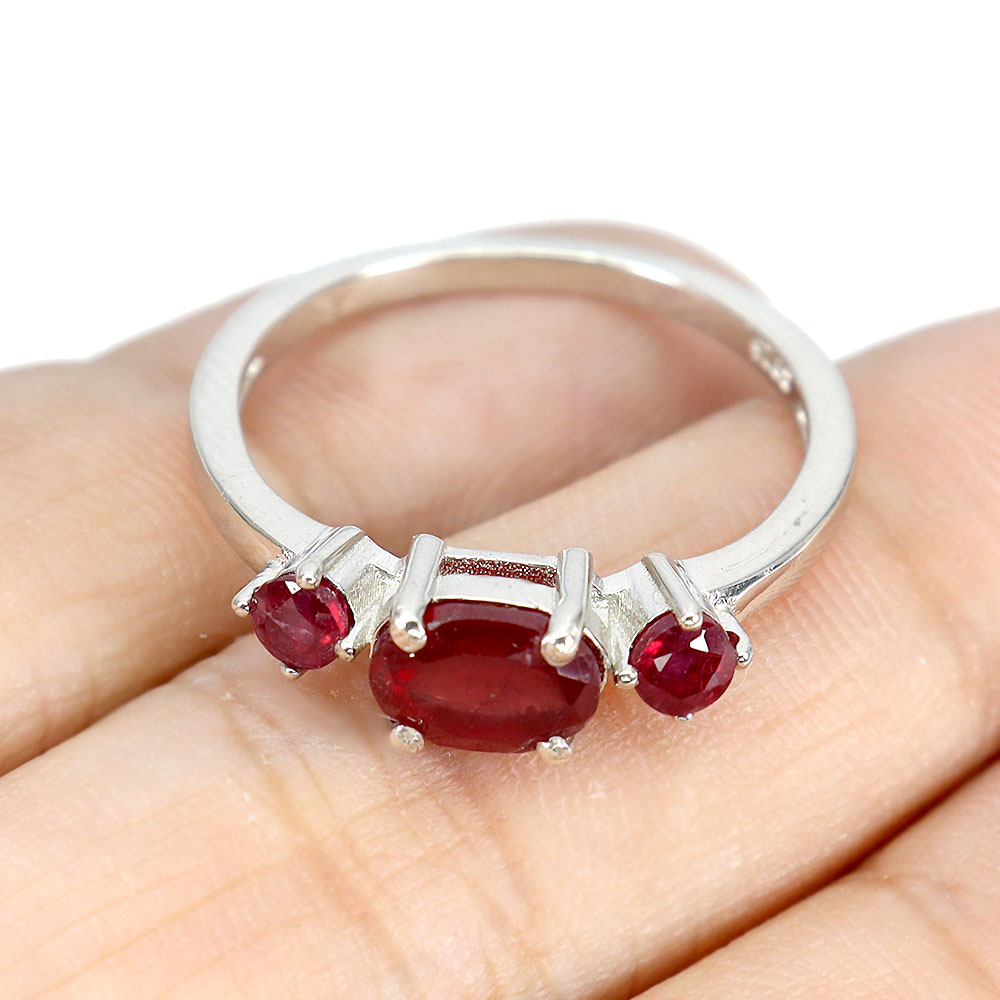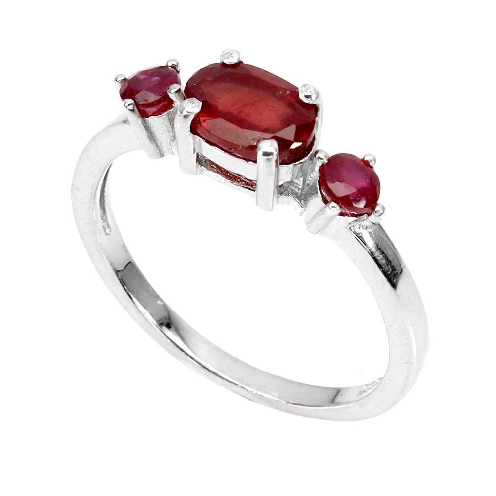 Heated Oval Red Ruby 7x5mm 14K White Gold Plate 925 Sterling Silver Ring 7.5