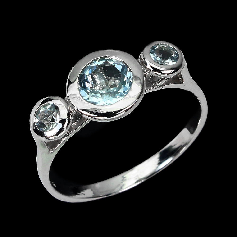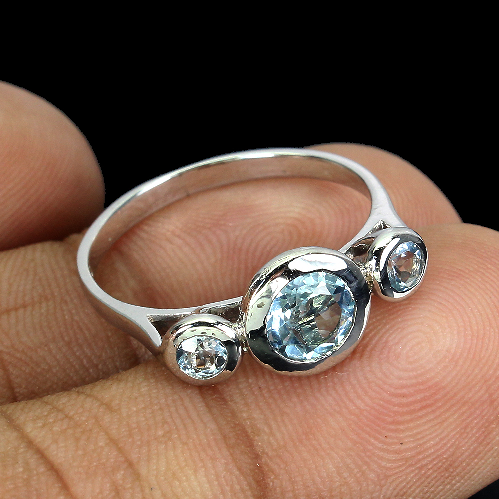 Irradiated Round Blue Topaz 8mm 14K White Gold Plate 925 Sterling Silver Ring 8