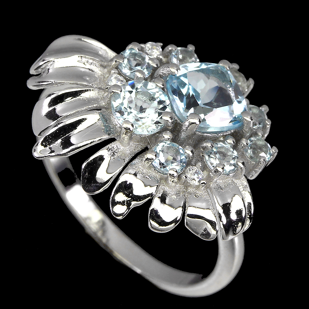 Irradiated Cushion Sky Blue Topaz 6mm Simulated Cz 925 Sterling Silver Ring Size 8