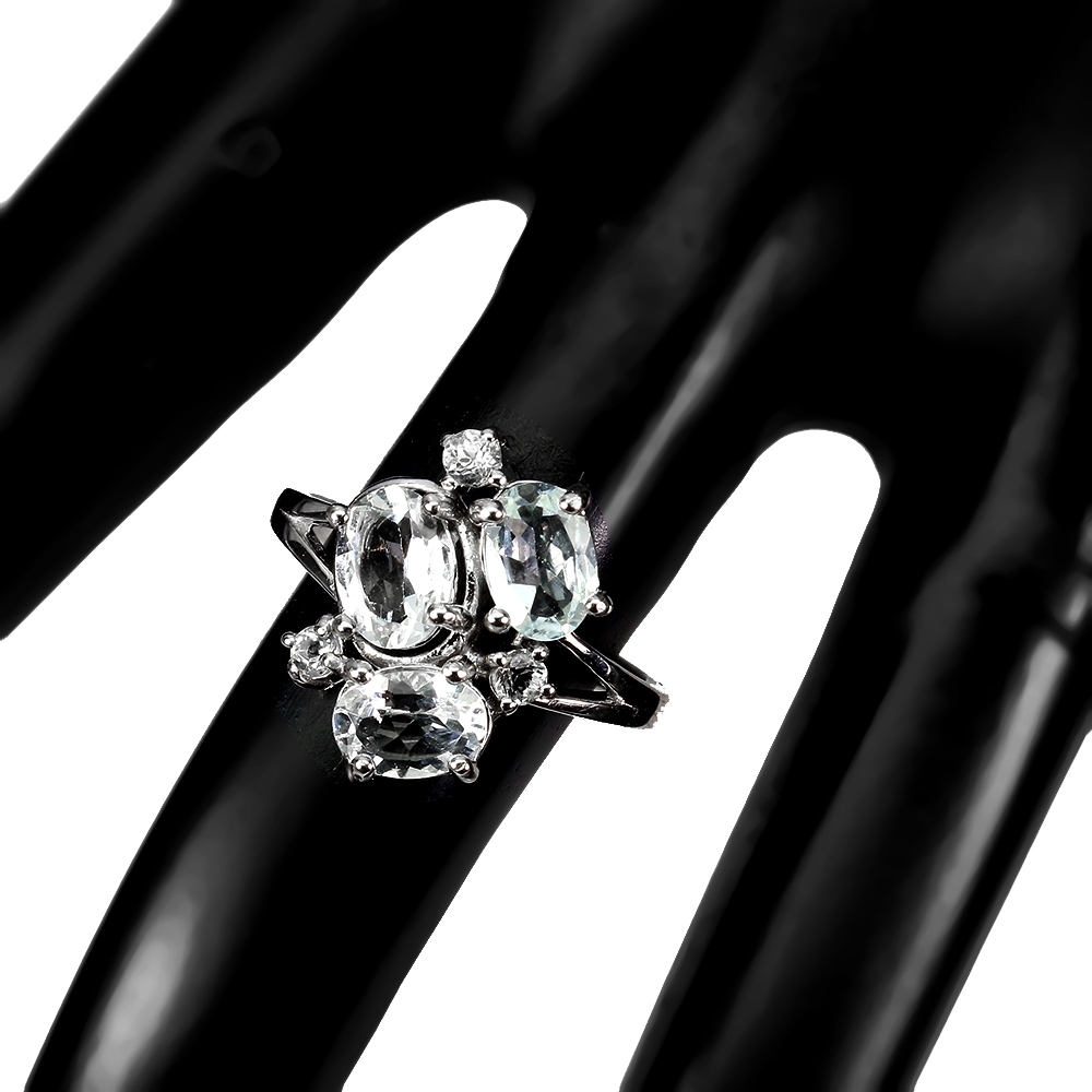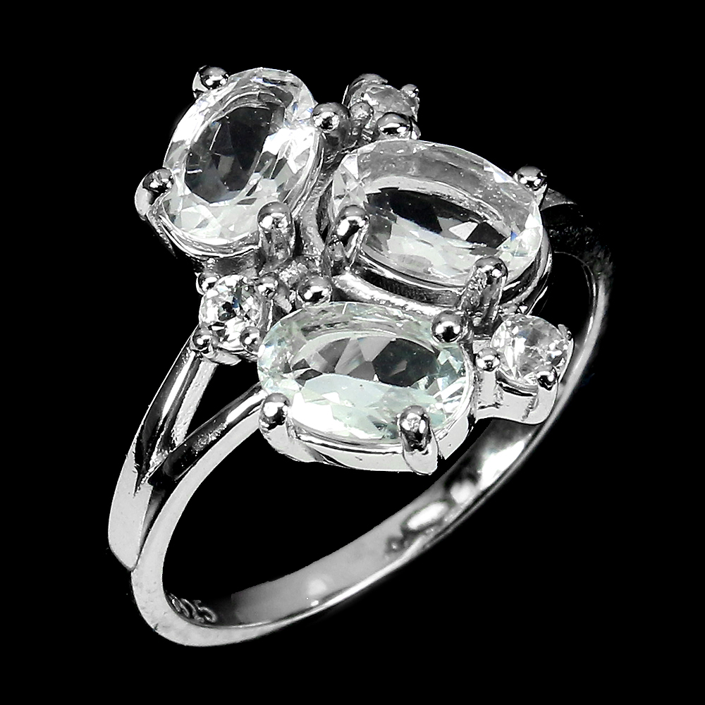 Unheated Oval Aquamarine 7x5mm 14K White Gold Plate 925 Sterling Silver Ring 8